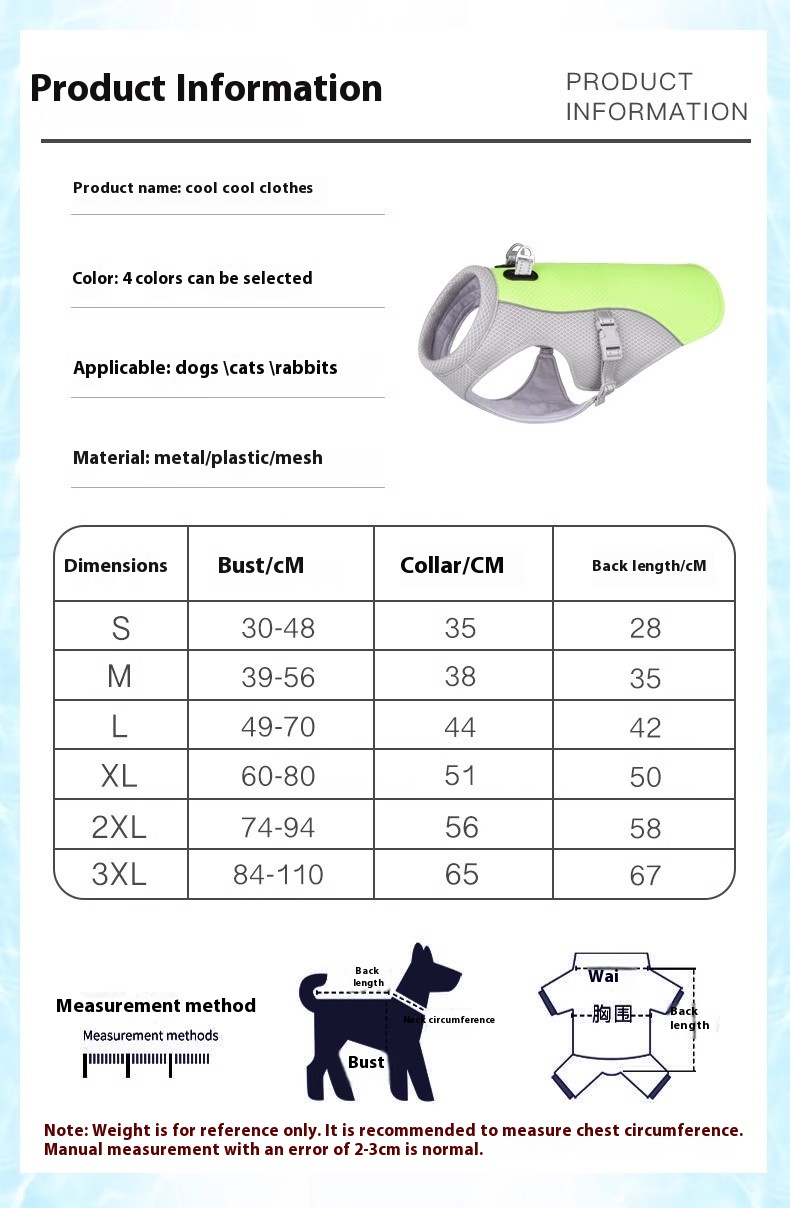 Dog summer cool clothes corgi/French bulldog medium large dog pet clothes traction summer cooling and heatstroke prevention artifact