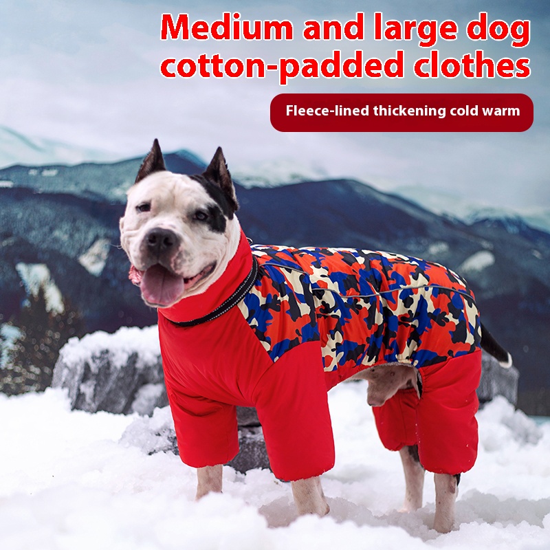 Dog thickened four-legged cotton-padded clothes large and medium size Samo golden retriever Dubin windproof snow autumn and winter clothes pet plus velvet warm clothing
