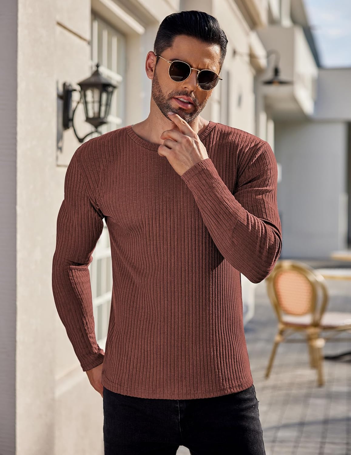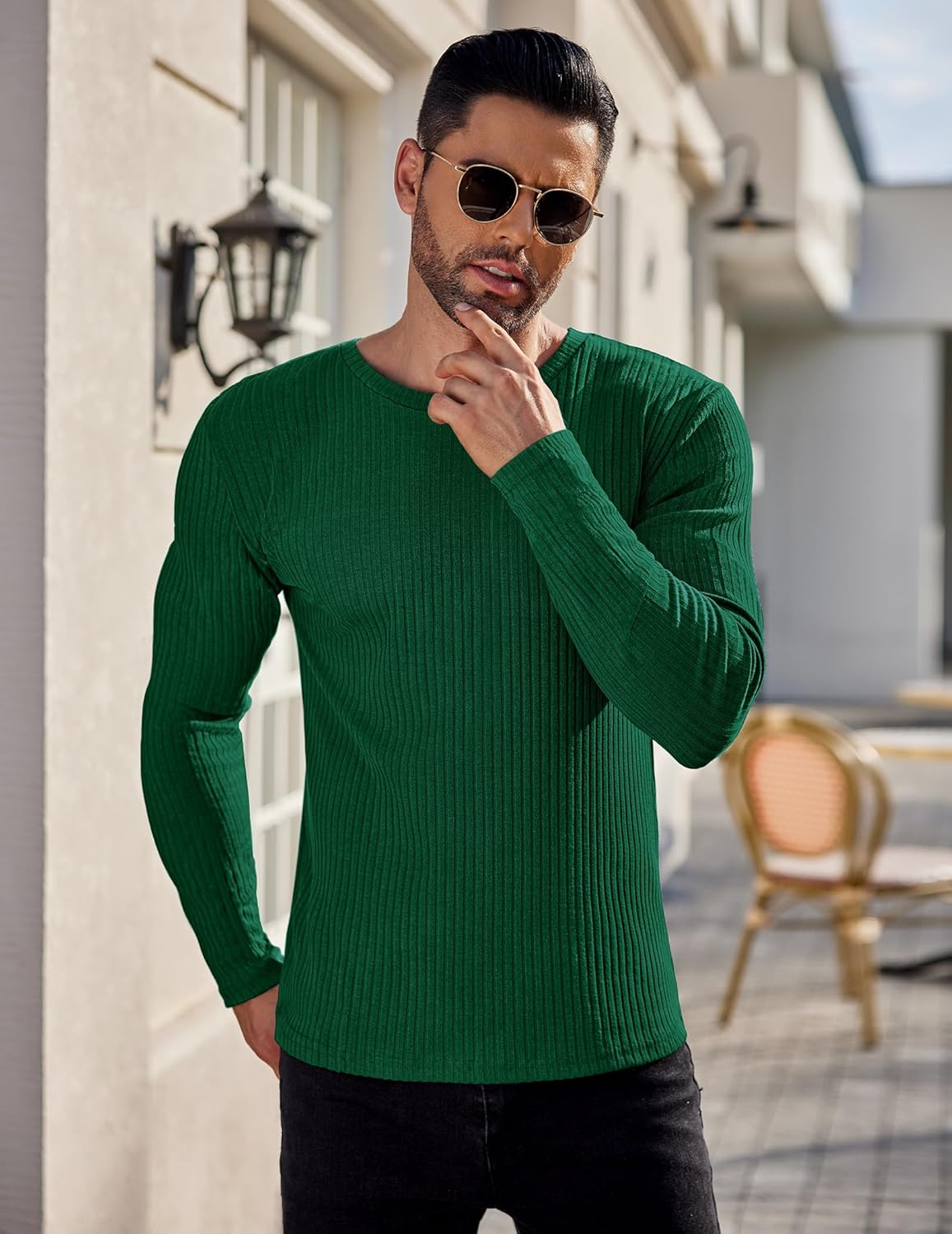 • Classic round neck design, Stretchy and skin-friendly material, Ekouaer Premium Ribbed Men's Thermal Shirts make you feel comfortable during spring, autumn, and winter. What's more, the sweater's slim-fit design will make your muscles more attractive.
