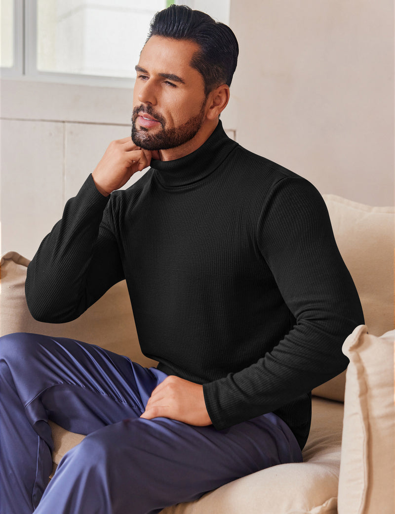 • Material: Made of 97% Polyester and 3% Spandex, this mens ribbed turtleneck features excellent stretch and shape retention while offering superior warmth and comfort. The fabric is soft against skin, breathable, and easy to care for.