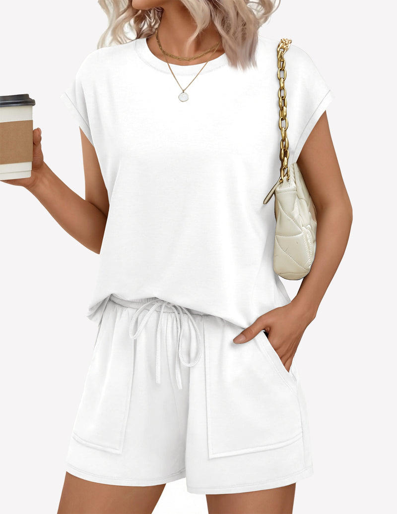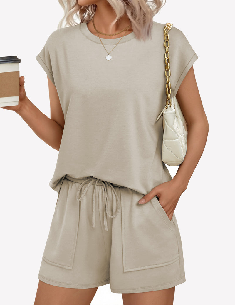 Lounge Short Sets Cap Sleeve Drawstring Vacation Outfits