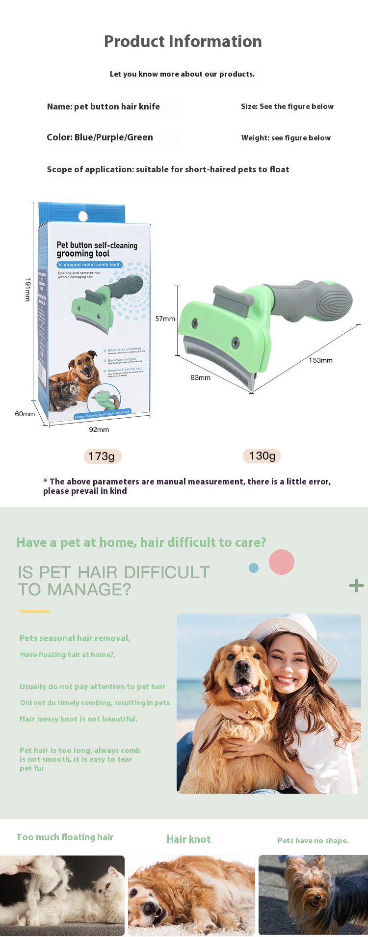 Pet Hair Remover dogs and cats float hair cleaning hair comb arc cutter head button hair removal beauty comb pet supplies