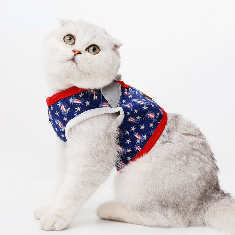 Pet harness teddy/French bulldog walking dog Hong Kong style Denim dog chest and back traction vest double-sided