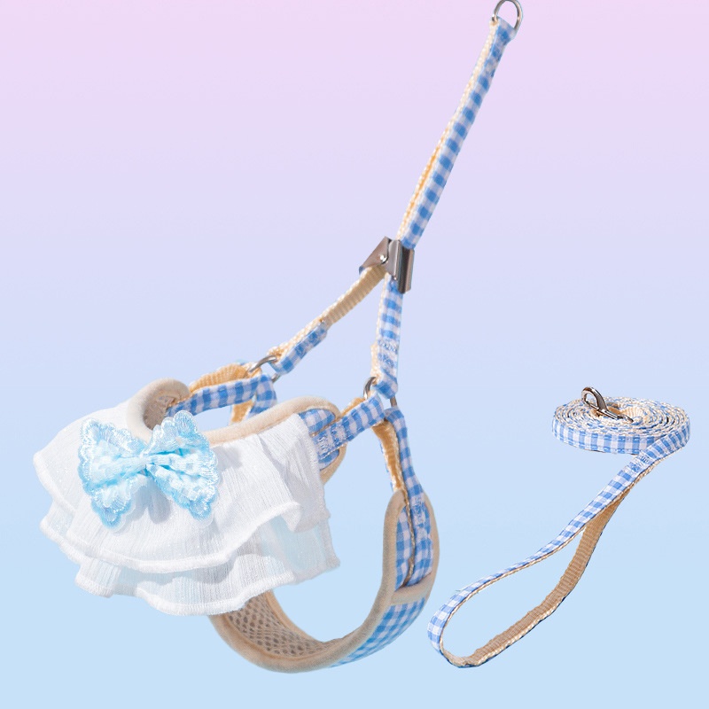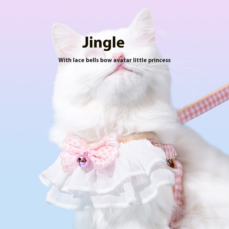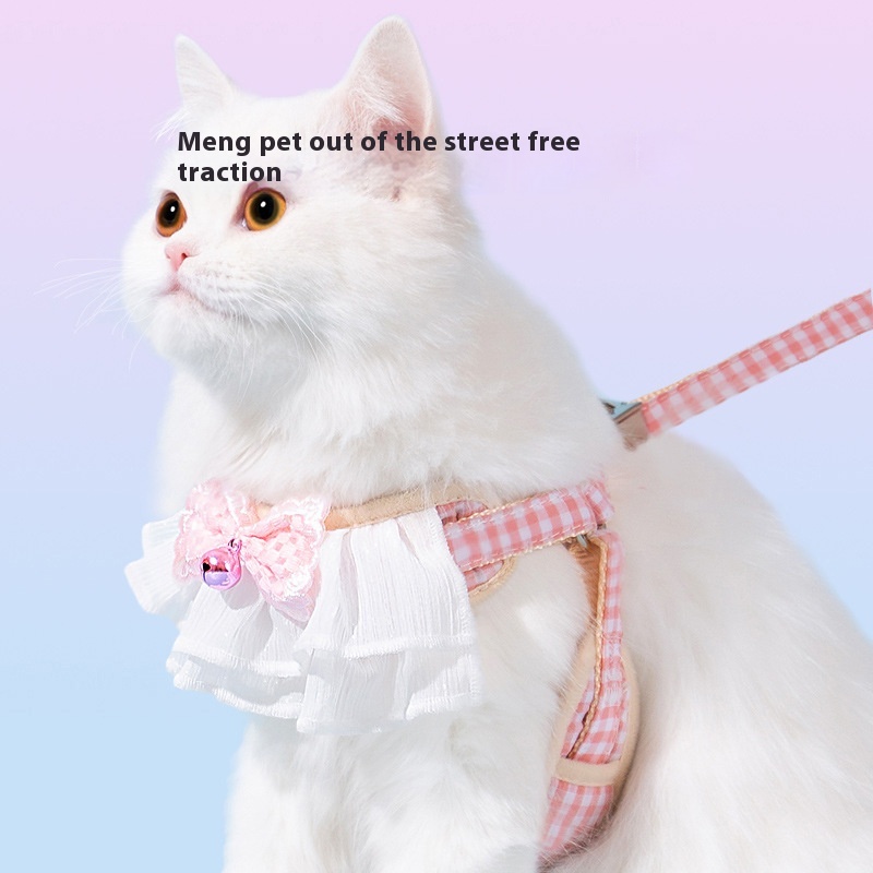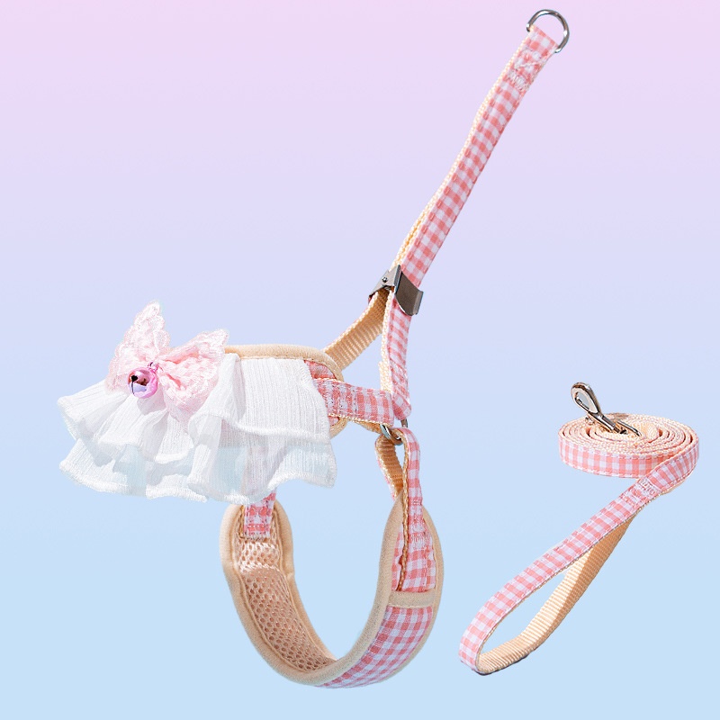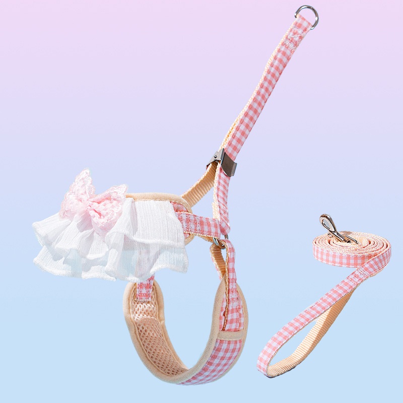 Plaid pink bow lace convenient to go out cat pulling rope dog leash spring and summer travel pet supplies