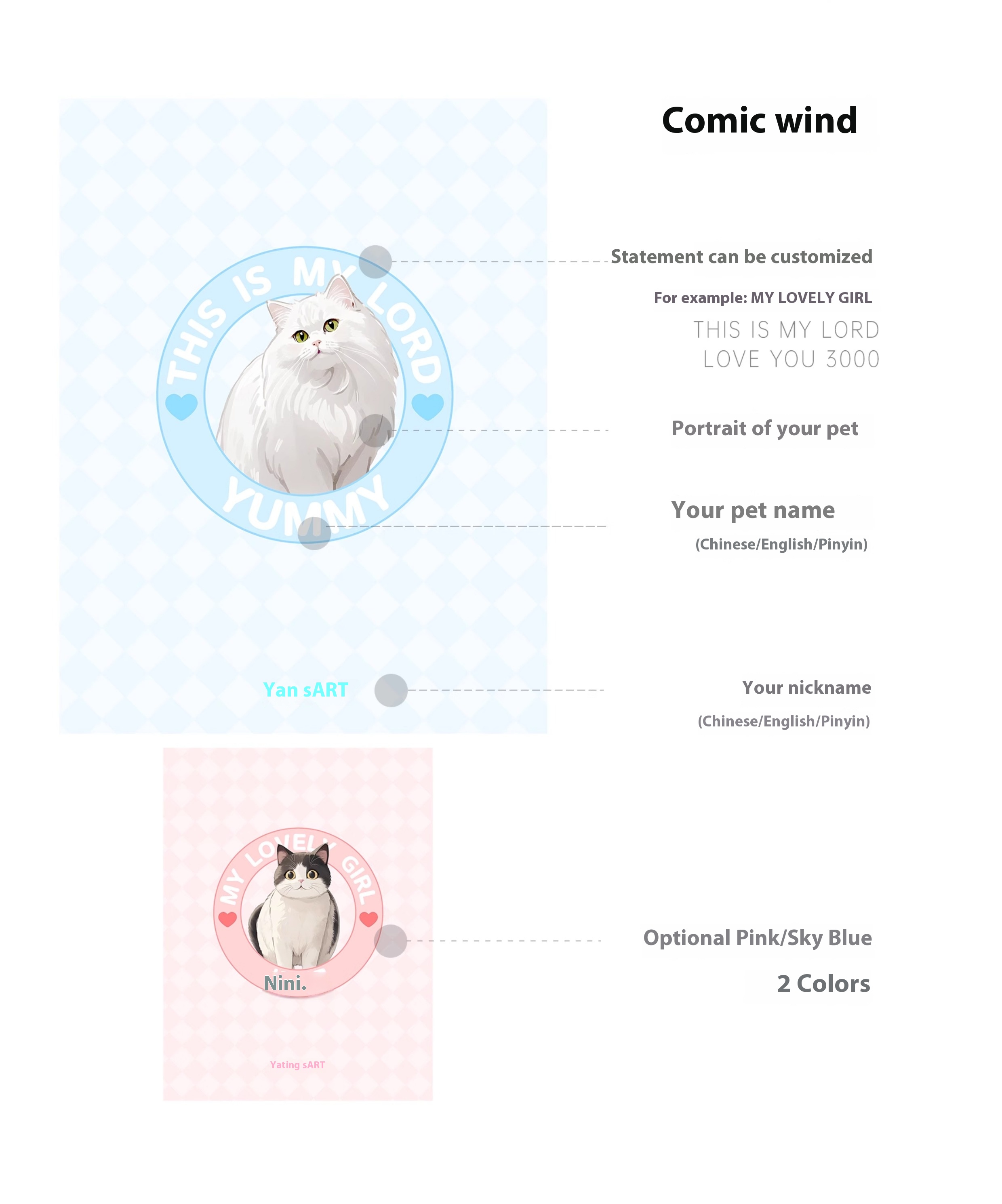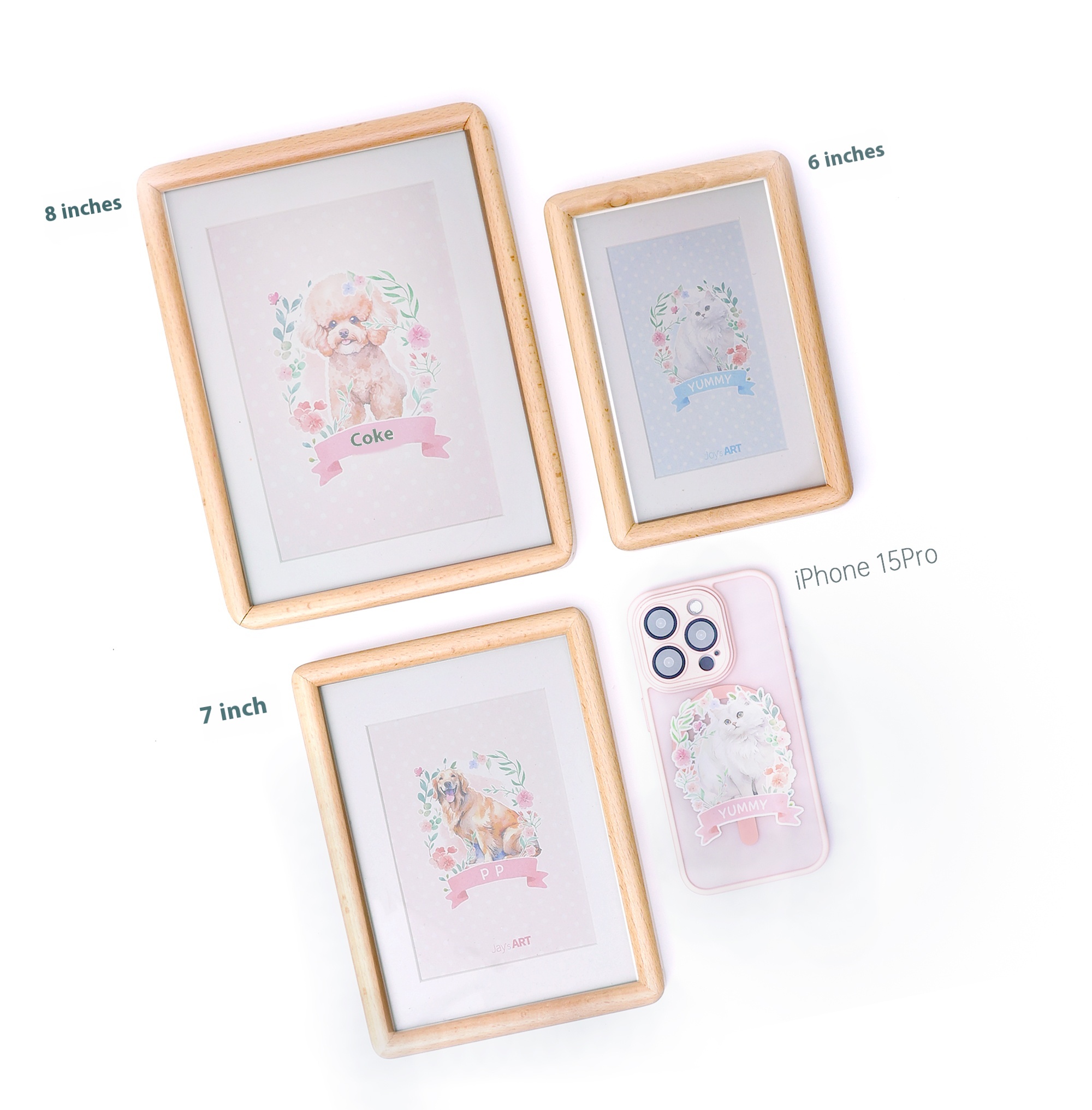 yourART pet custom photo frame solid wood table-top picture frame six 678-inch printing cat and dog drawing hand-painted