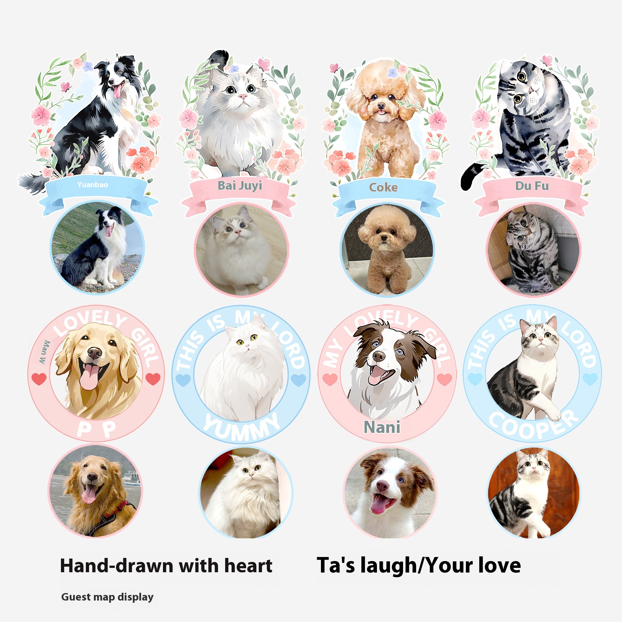 yourART pet customization glass of photo frame solid wood transparent picture frame 678-inch printing cat and dog drawing hand-painted