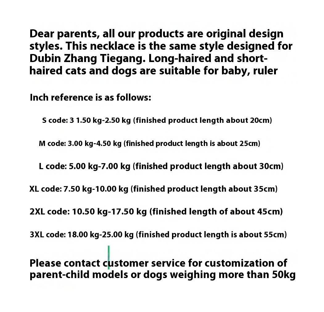 For dogs weighing more than 50 Jin, please contact Customer Service for customization