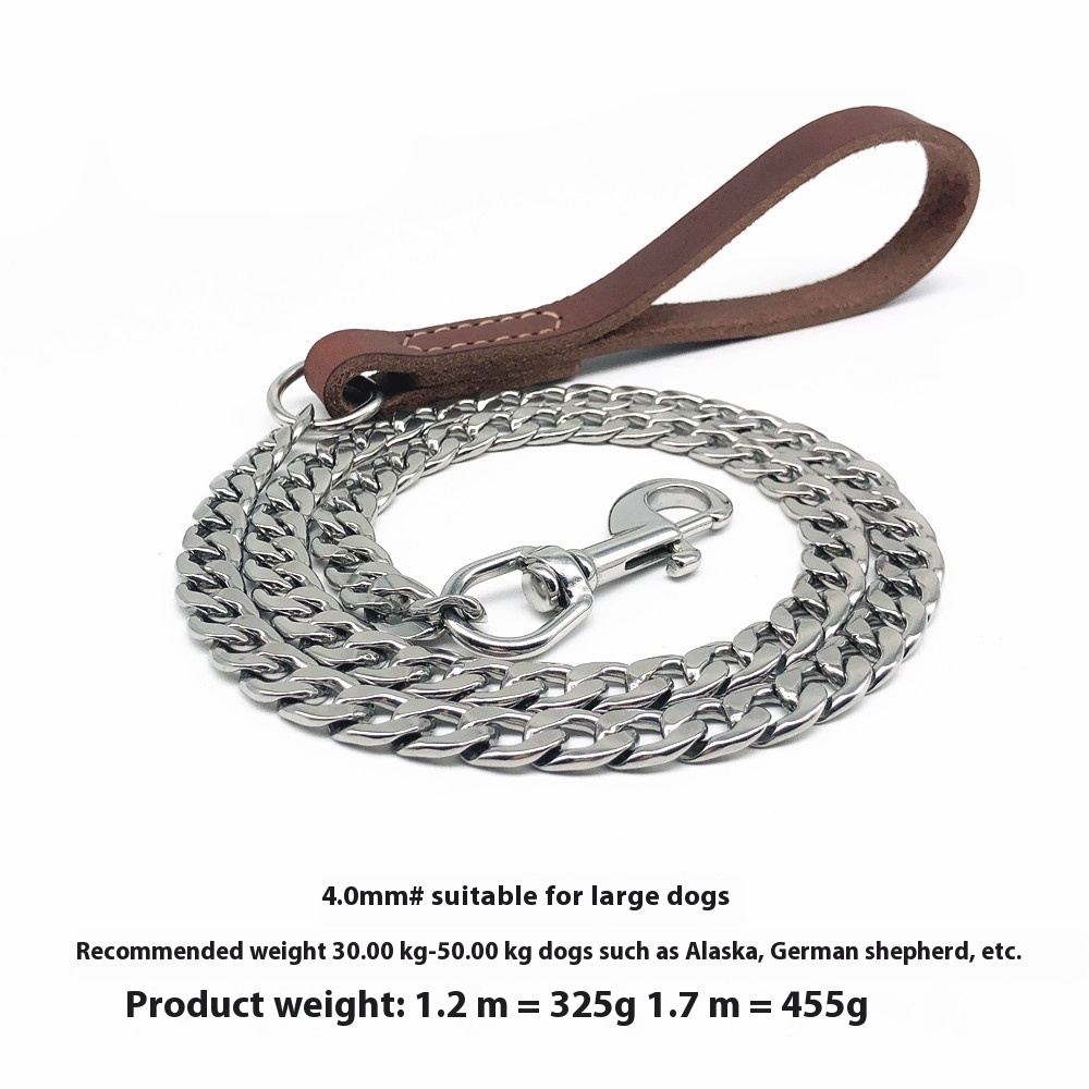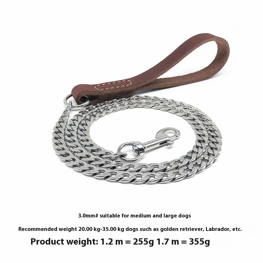 304 stainless steel dog hand holding rope anti-bite real cowhide dog walking iron chain small medium large dog golden retriever corgi