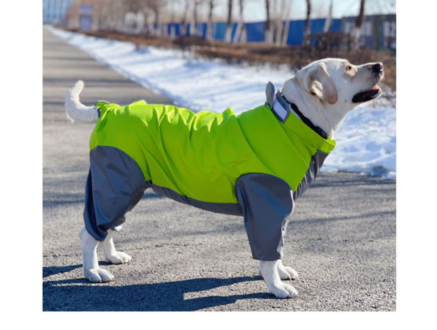 Keep your large dog dry and comfortable with our all-inclusive waterproof raincoat. Designed for full coverage, this four-legged jacket features a hood, reflective strips, and a secure fit. Ideal for Labradors, Samoyeds, and other large breeds, it offers superior protection against rain and wind.