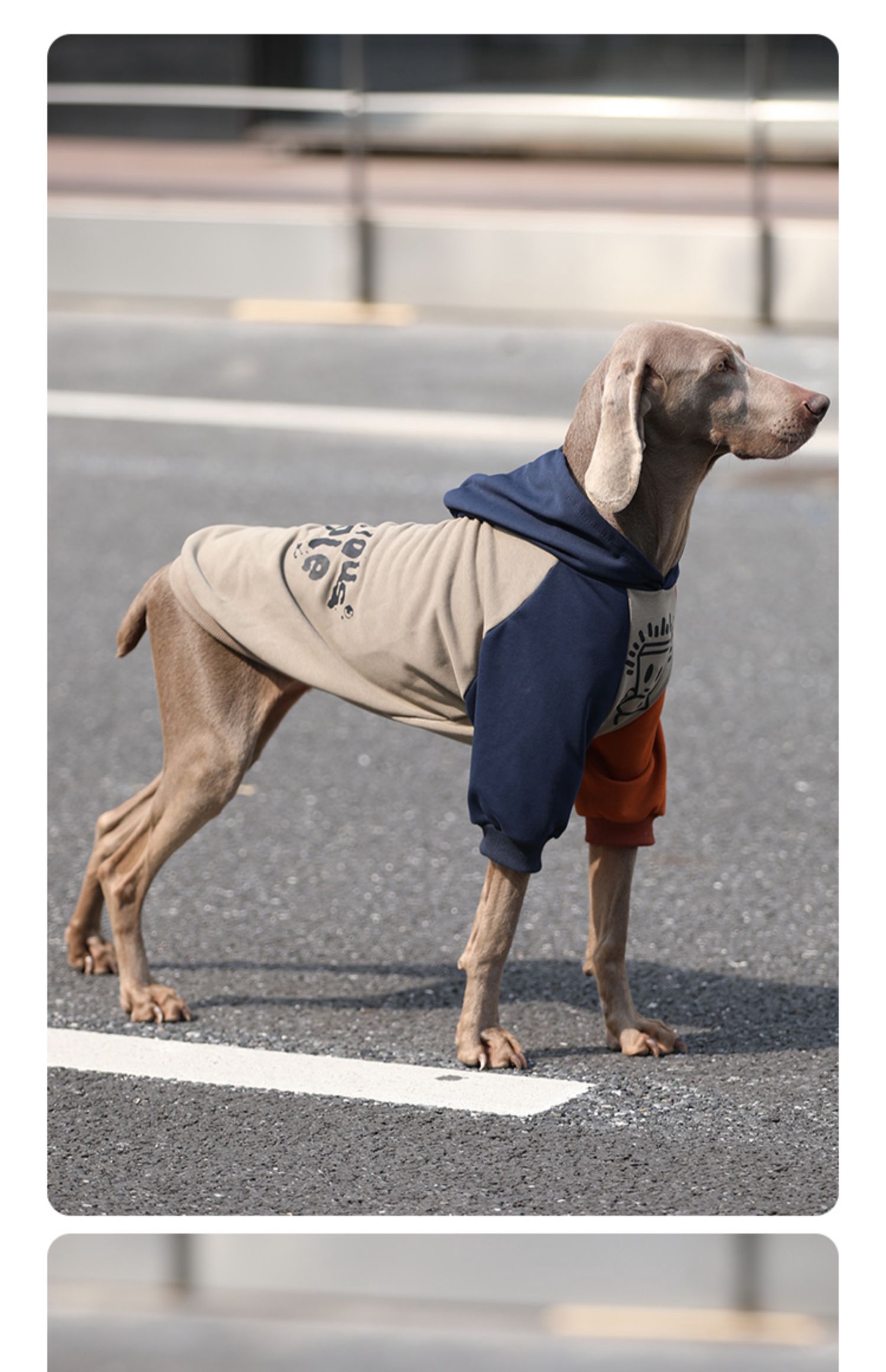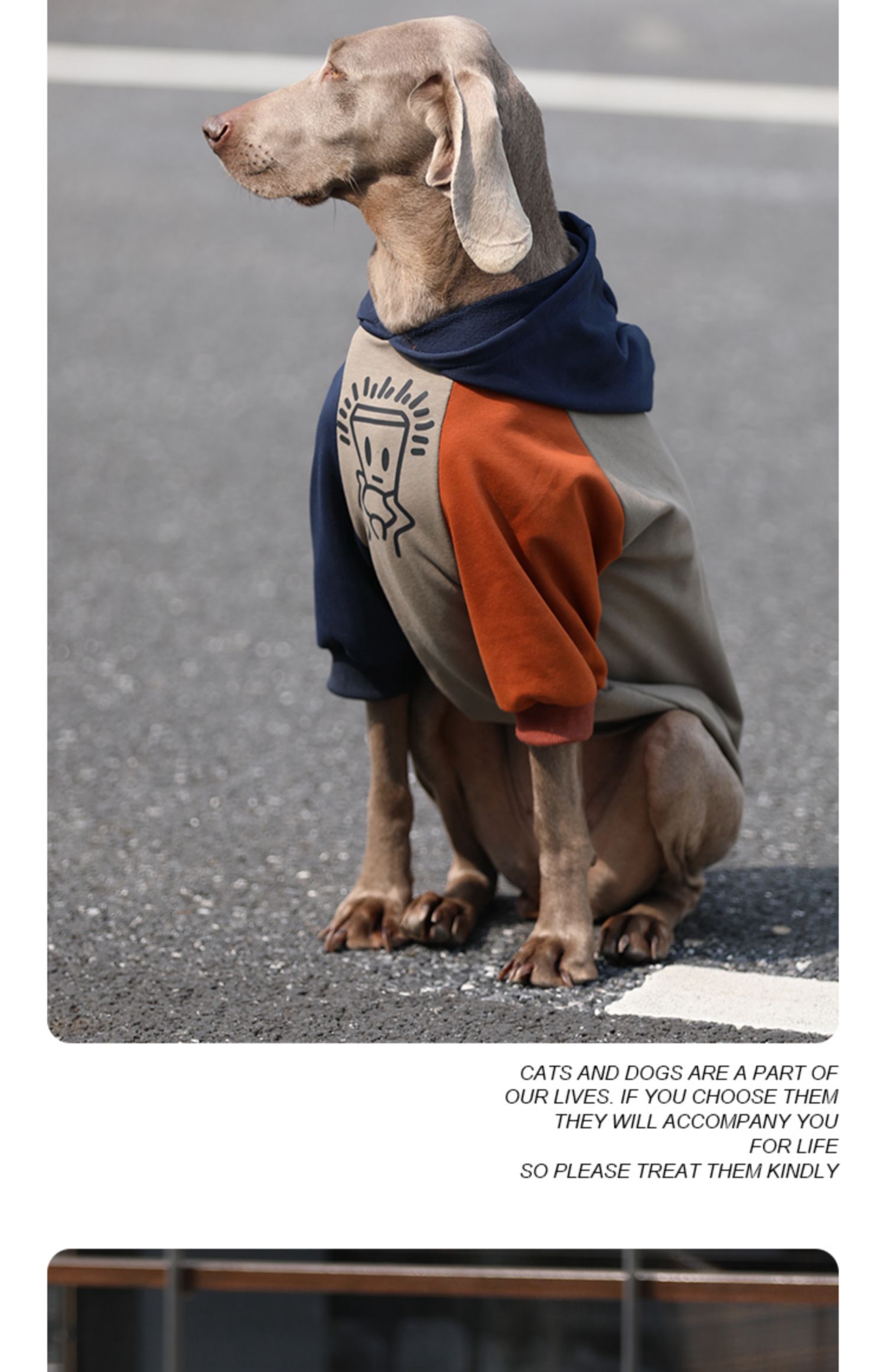 • Stylish Design: The two-toned hoodie in navy, beige, and orange adds a trendy touch to your dog's wardrobe. The comfortable hood provides added warmth and style.
