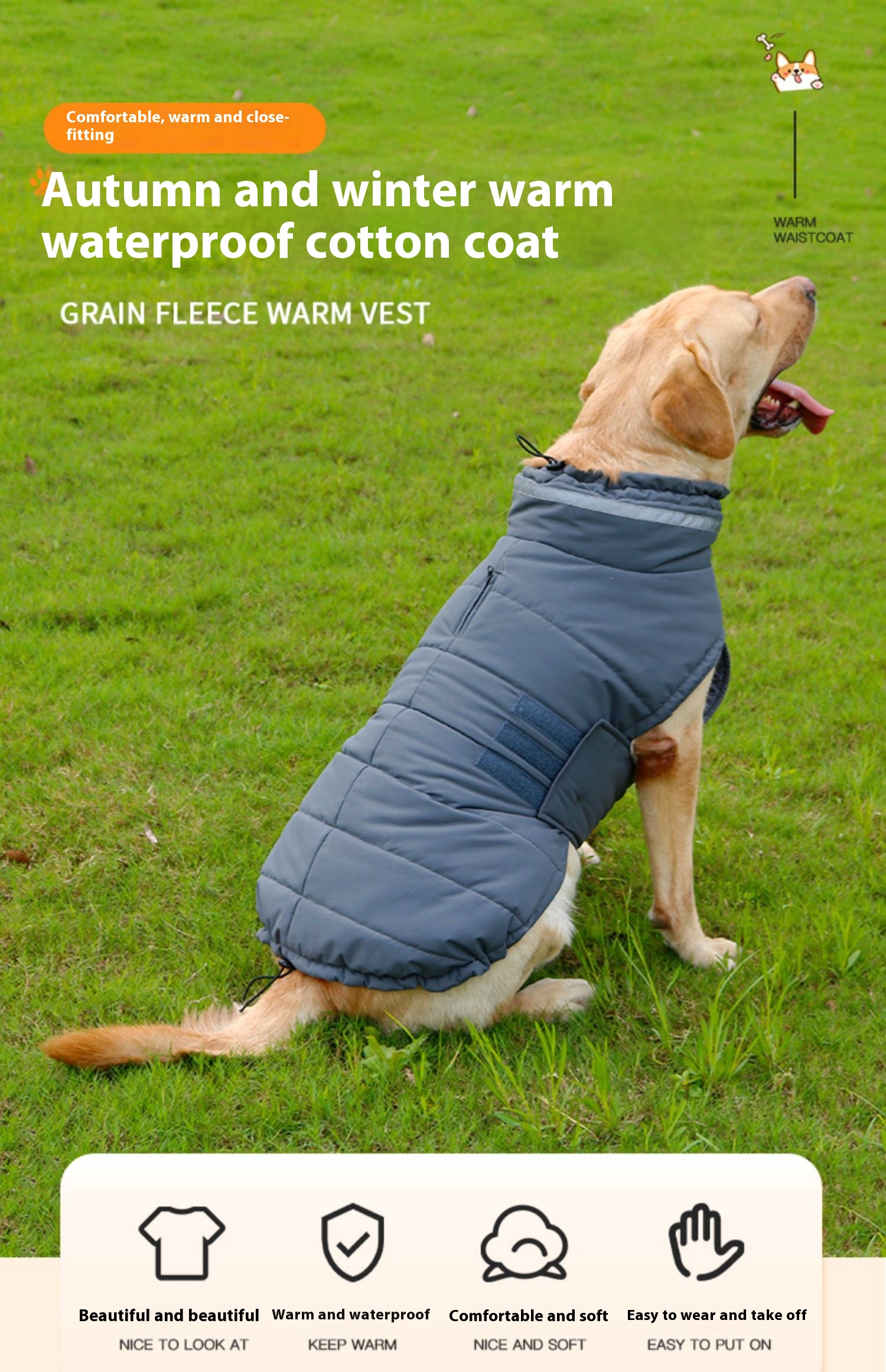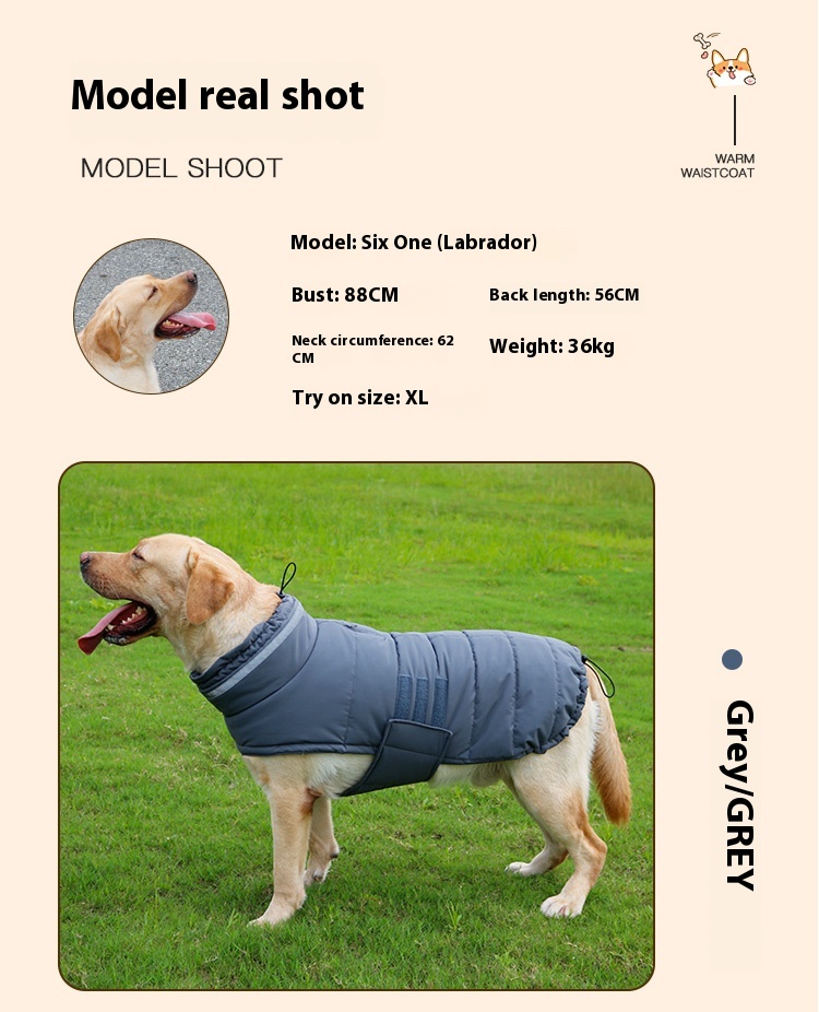 Autumn and winter clothes for dogs thickened warm medium large dog cotton-padded clothes golden retriever Labrador winter pet cotton vest