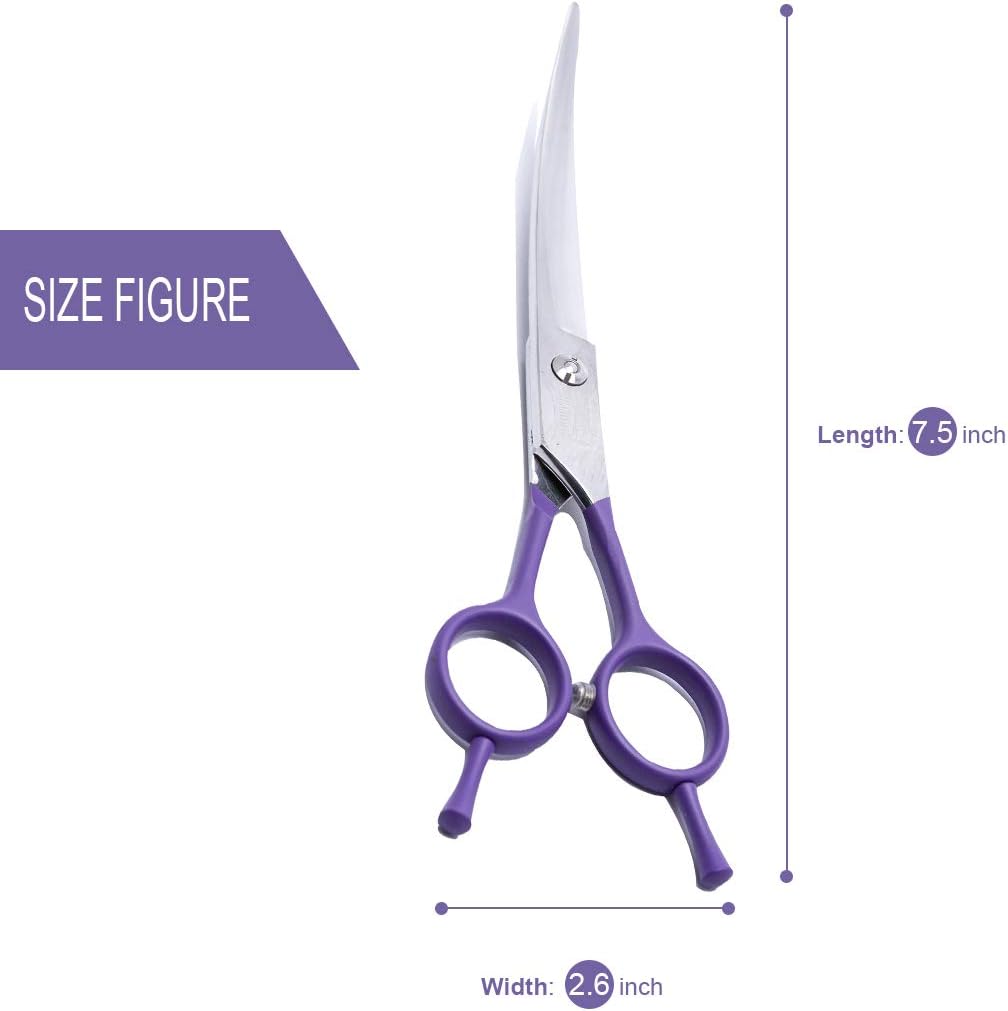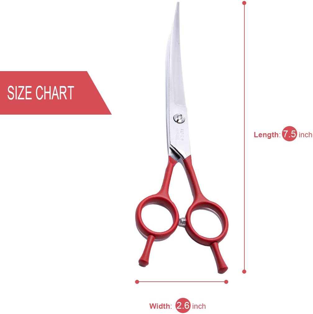• THE INNOVATIVE DESIGN REGARDLESS OF THE LEFT AND RIGHT HANDS AND THE 25-DEGREE GRADUAL BENDING DESIGN MAKE THE SCISSORS EASIER TO USE: when we were grooming the dog’s hair, we found that the actual dog’s part was more complicated, and for safety, there are curved scissors. Very good protection; other parts are more convenient to use the right hand, and some parts are more convenient to use the left hand. This dog curved scissors can fully meet this need.