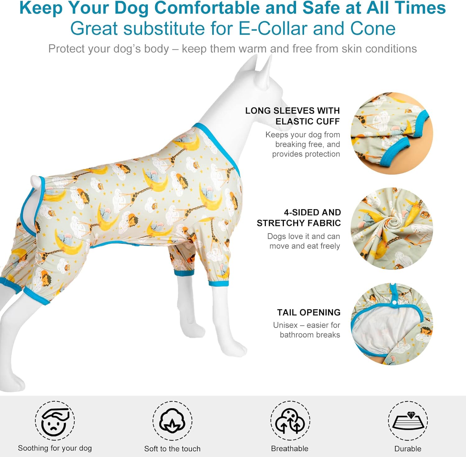 • 【Perfect combination of shame cones】 If your big dog had knee surgery and this item is perfect. It is a great option to use instead of the dreaded cone of shame. It fits very well, and covers her knee perfectly. And, of course she is cute, adorable and comfortable.