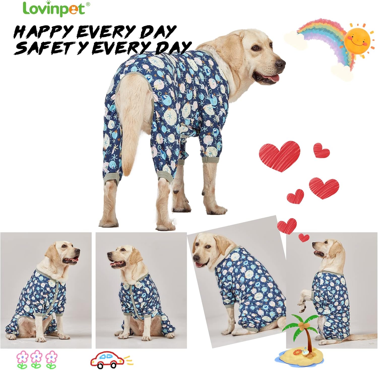 • 【Perfect for dogs sleeping】 Wearing our professional large dog pajamas allows them to sleep soundly in both spring, summer, autum and cold winter nights.wearing it makes your pet looks beautiful, lovely.