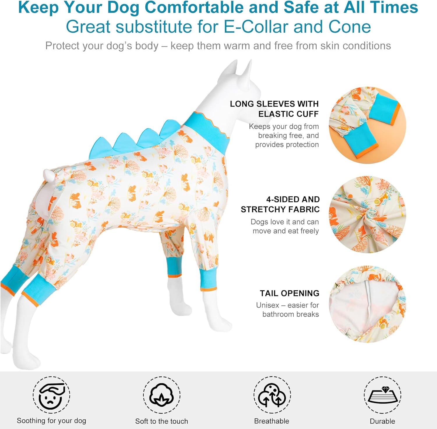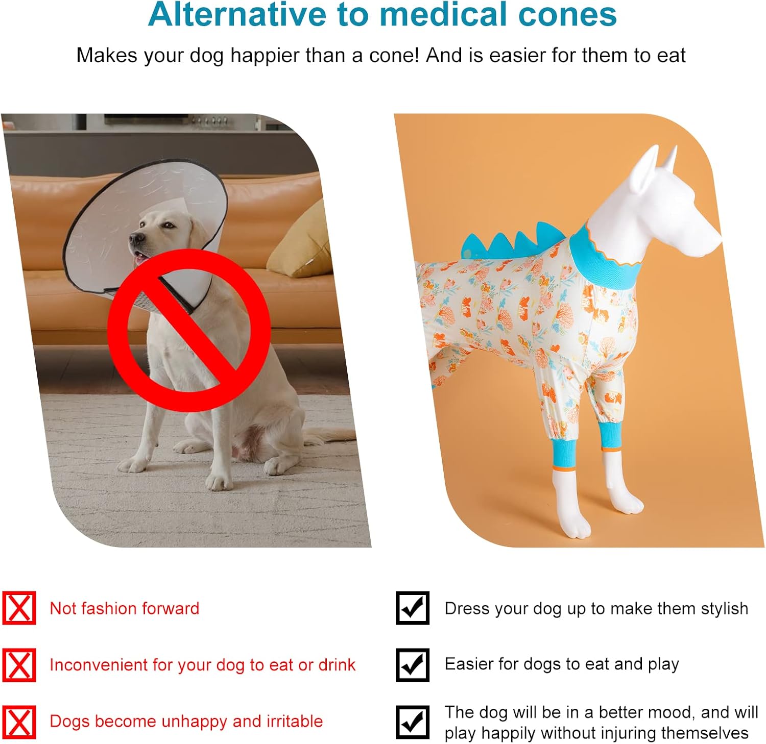 • [Perfect combination of shame cones] If your big dog had knee surgery and this item is perfect. It is a great option to use instead of the dreaded cone of shame. It fits very well, and covers her knee perfectly. And, of course she is cute, adorable and comfortable.