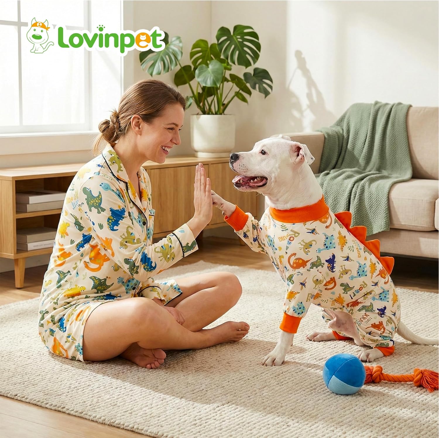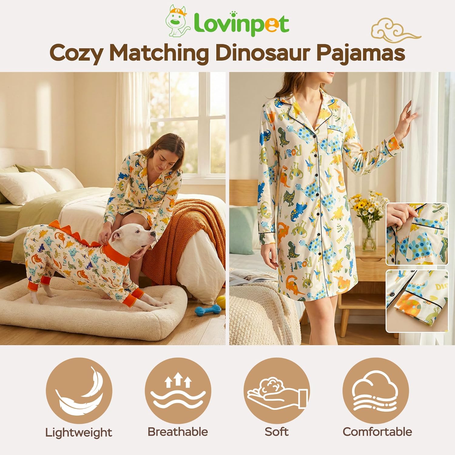 • FUN DINOSAUR PRINT + CURVED HEM: Playful print stands out for family photos and pajama themes; curved hem adds easy coverage and movement. Pairs well with LovinPet dinosaur-themed dog pajamas for a coordinated look (dog outfit sold separately)