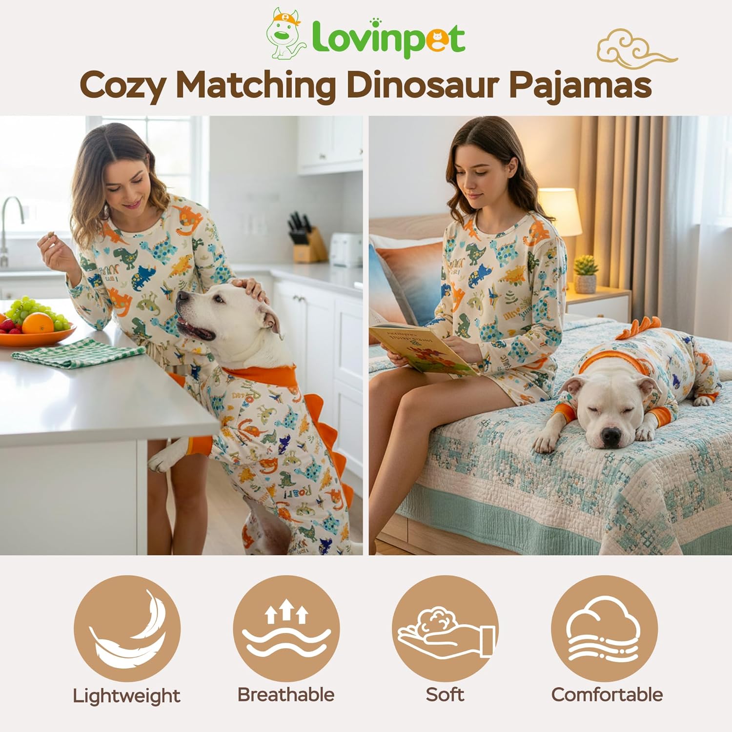 • PLAYFUL DINO PRINT AND GIFT-READY: Cute dinosaur pattern adds a fun, festive vibe for photos and cozy nights. A practical gift option for birthdays and major holidays—easy to love, easy to wear. Pairs well with LovinPet dinosaur dog pajamas (dog outfit sold separately)