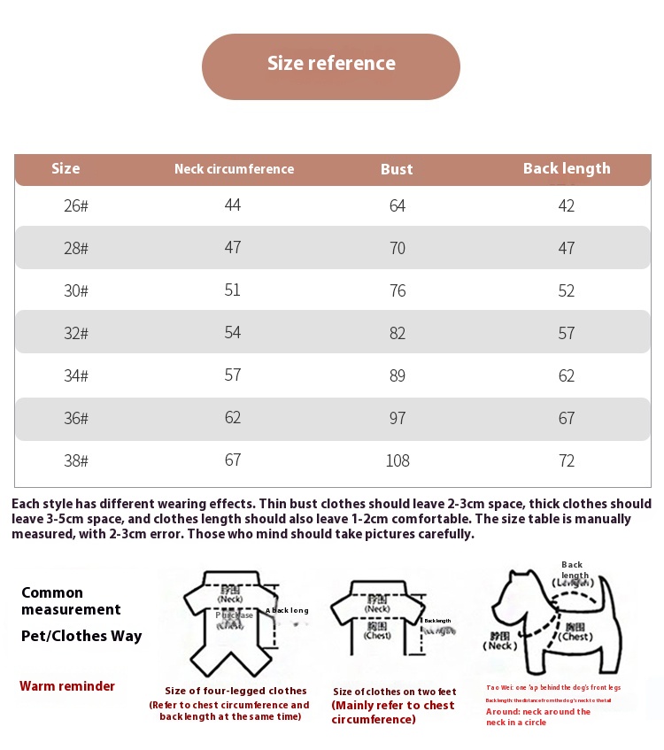 Size 34 (back 65cm chest 89cm suitable for 30.00 kg-39.00 kg