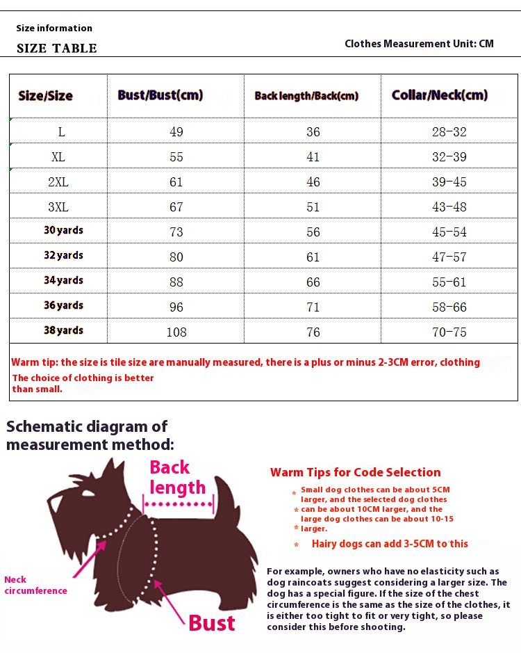 3XL (chest circumference 67, back length 51)