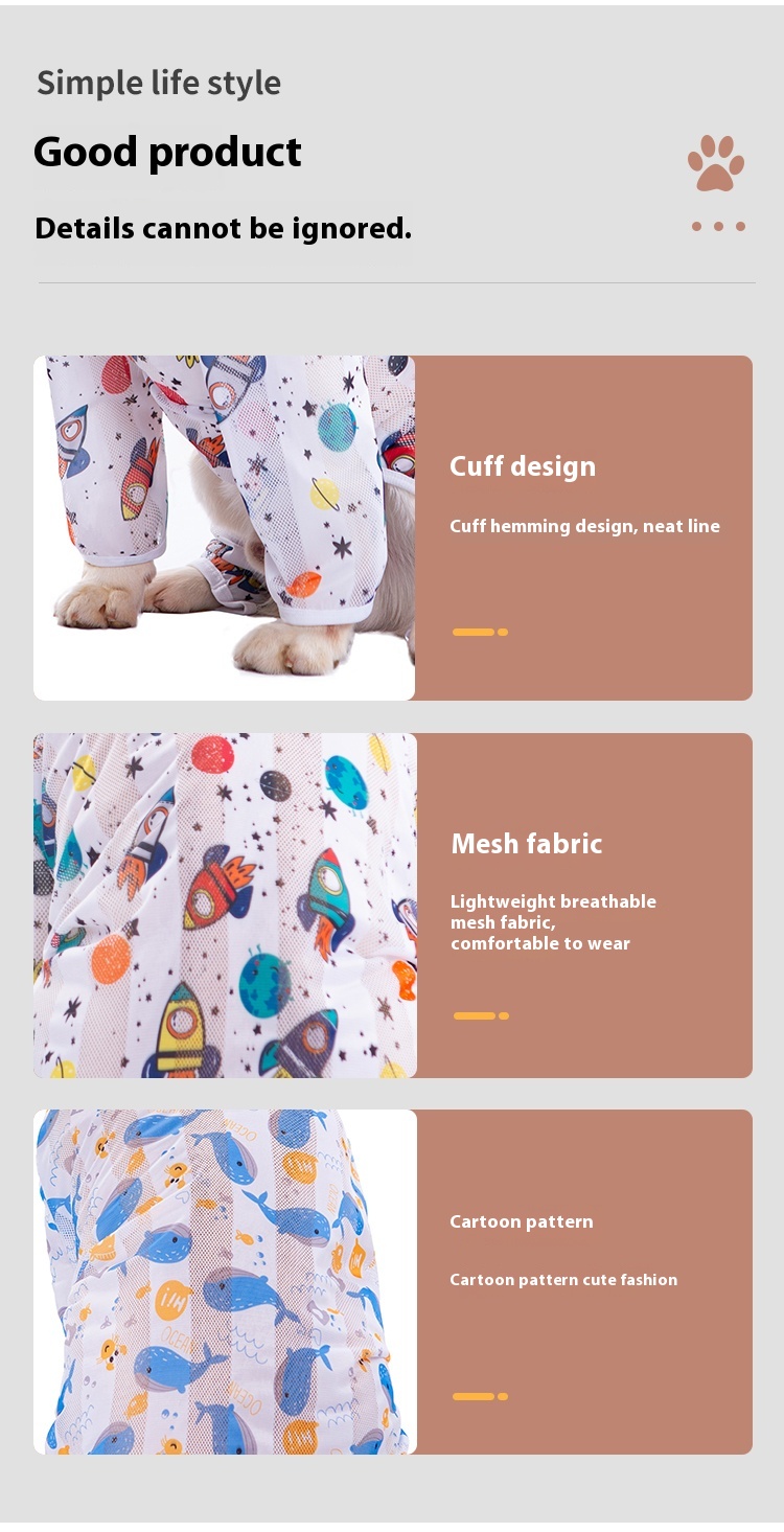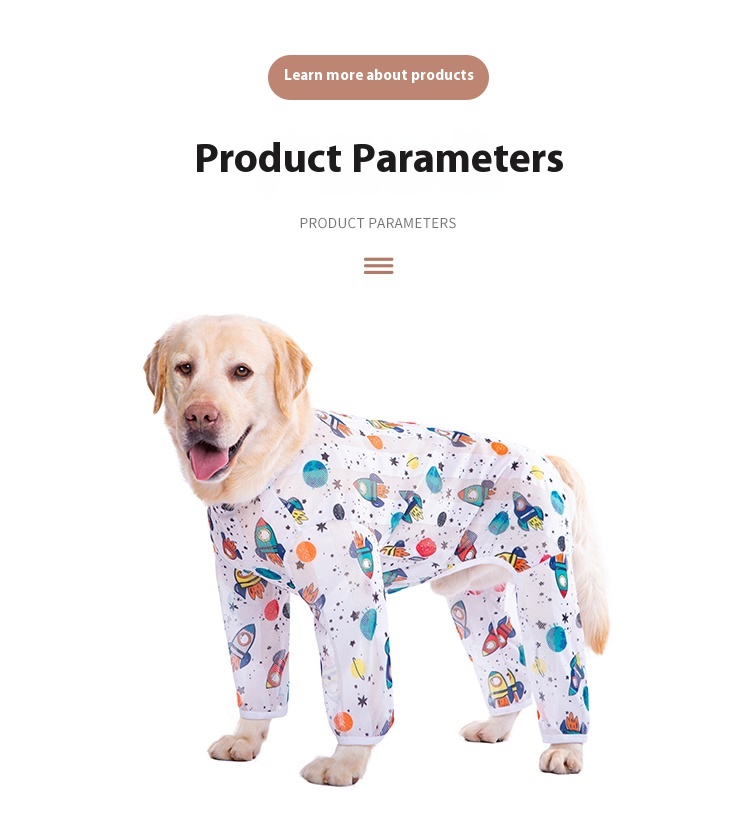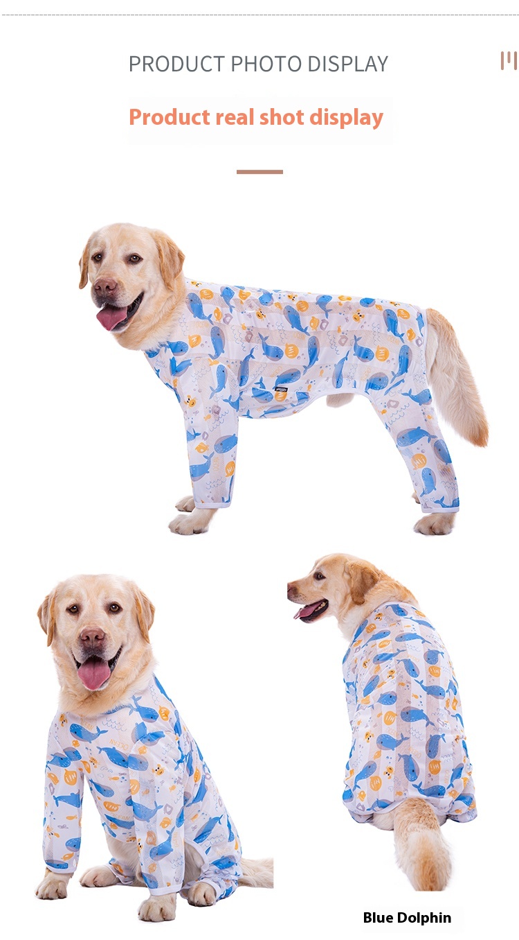 Big dog clothes spring and summer thin golden retriever Labrador medium large dog fat dog anti-lint home four-leg pajamas