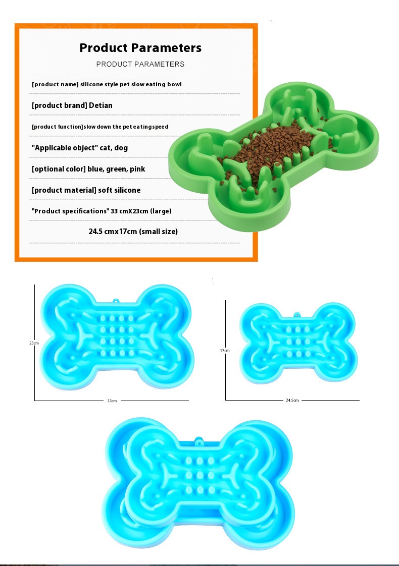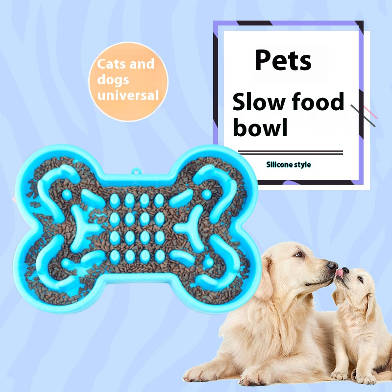 Bone type silicone dog bowl pet slow feeding bowl dogs and cats puzzle slow food basin jungle dog blocking food Anti-Chye Pet Bowl
