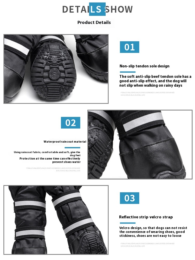 Camile full waterproof pet shoes medium large dog dog outdoor rain boots automatic luminous strap at night