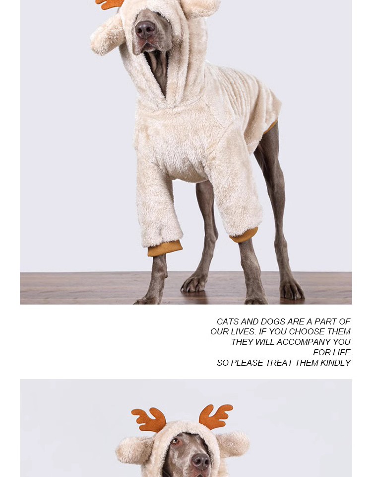 🎅 Festive and Functional Design: Our Christmas dog hoodie features a charming reindeer design, complete with antlers, making your pet the star of the season. The hoodie is tailored for large dogs, ensuring a snug and comfortable fit while celebrating the holidays in style. 🦌