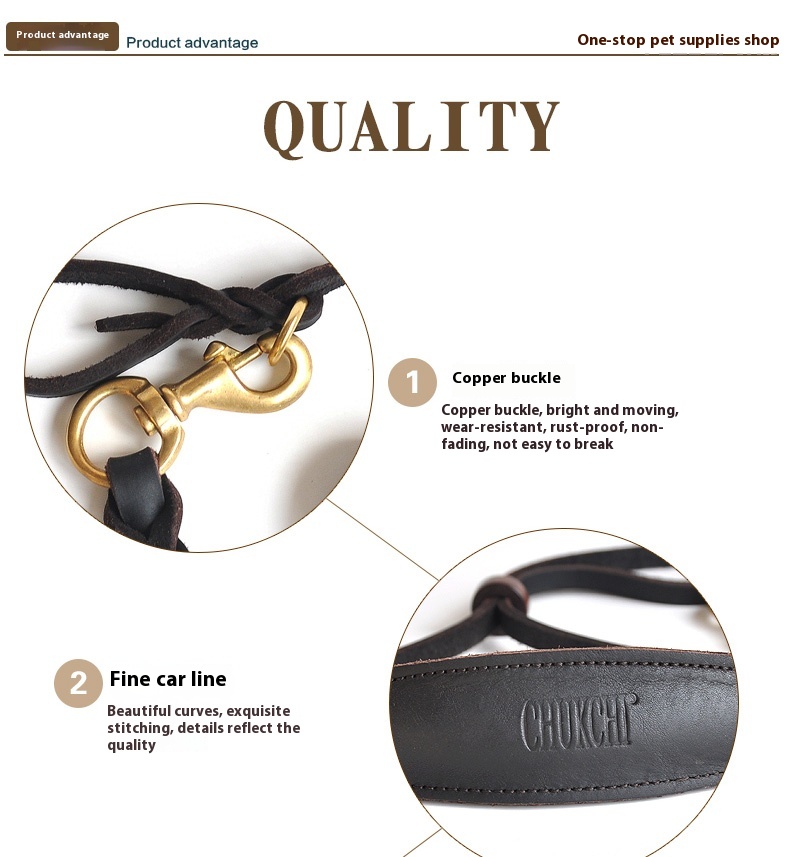 CHUKCHI leather pulling rope dog collar suit pet P chain neckband medium and large dogs supplies dog leash 024