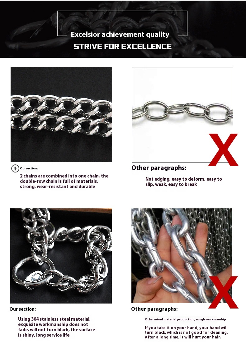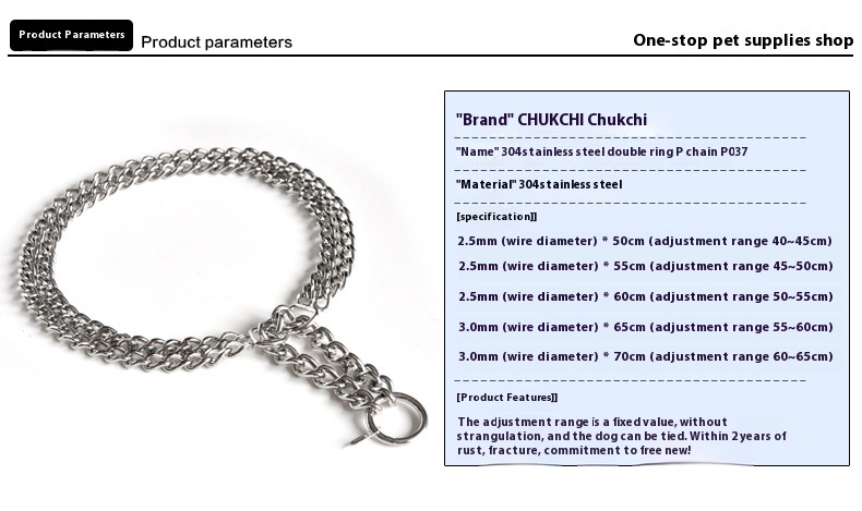 CHUKCHI pet stainless steel half P chain dog P chain dog collar double row training dog walking medium large dog
