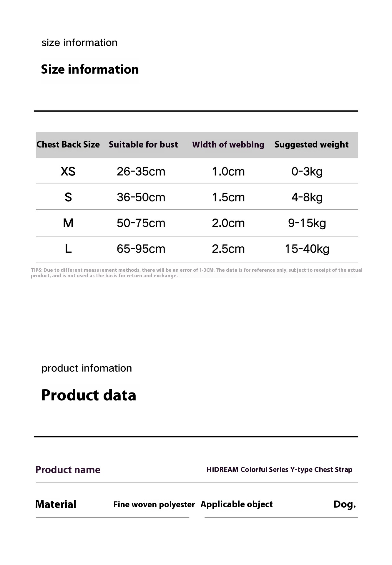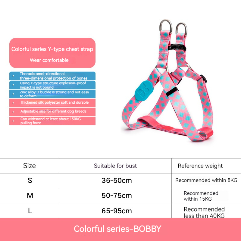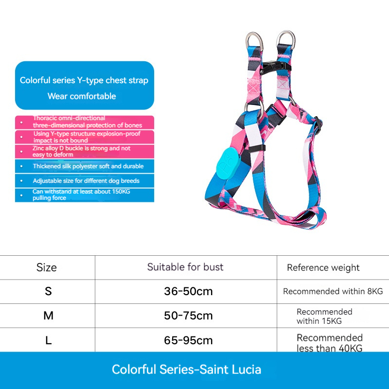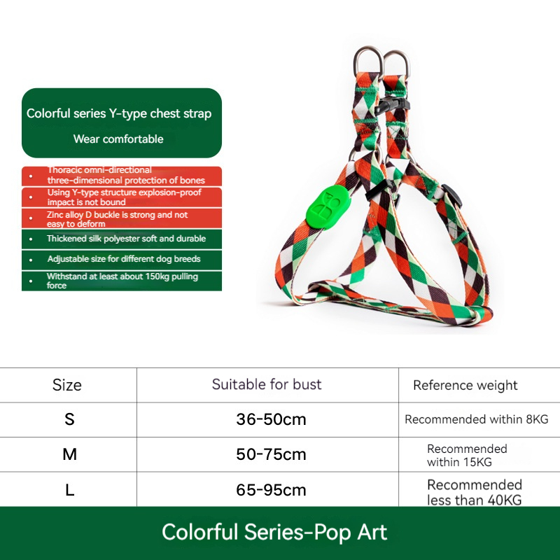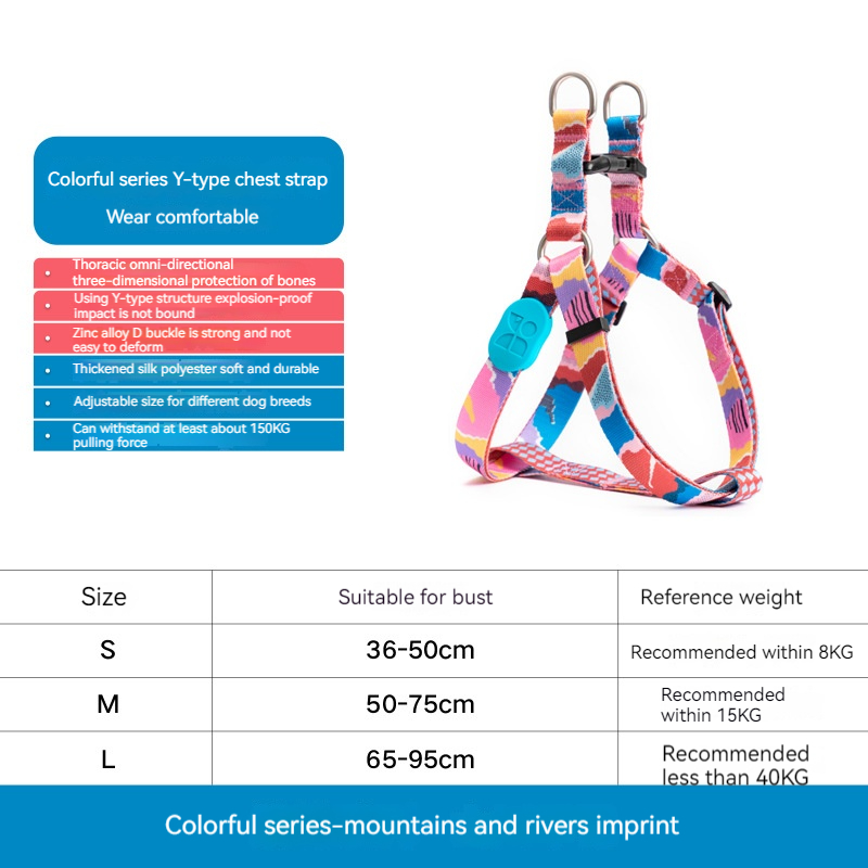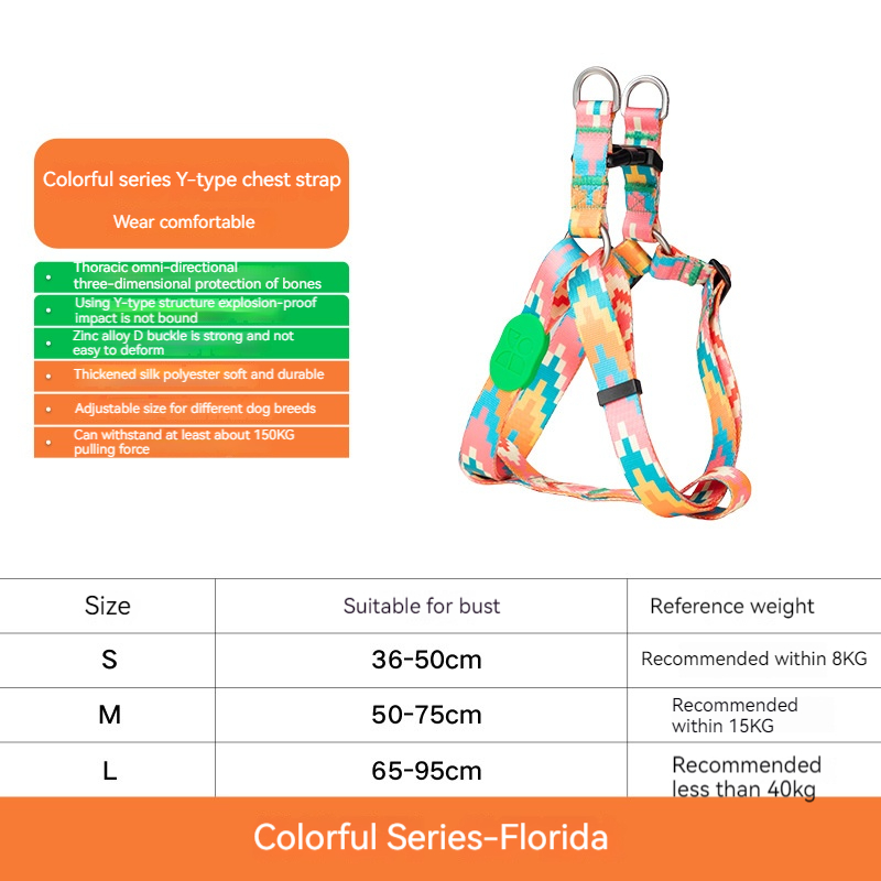 Colorful dog chest and back anti breaking loose small, medium and large dogs Teddy Shiba Inu golden retriever Corgi easy to wear fashion