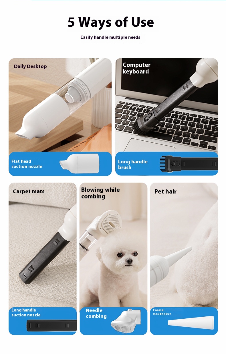 Comb hair suction all-in-one machine hair dryer small dog hair pulling noise small wireless handheld pet supplies
