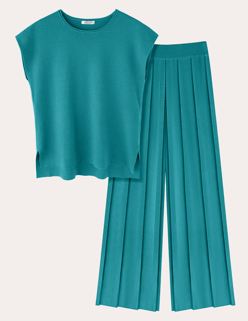 • Pants: Knit wide leg pants for women, high waisted, comfy elastic waistband, unique pleated design.