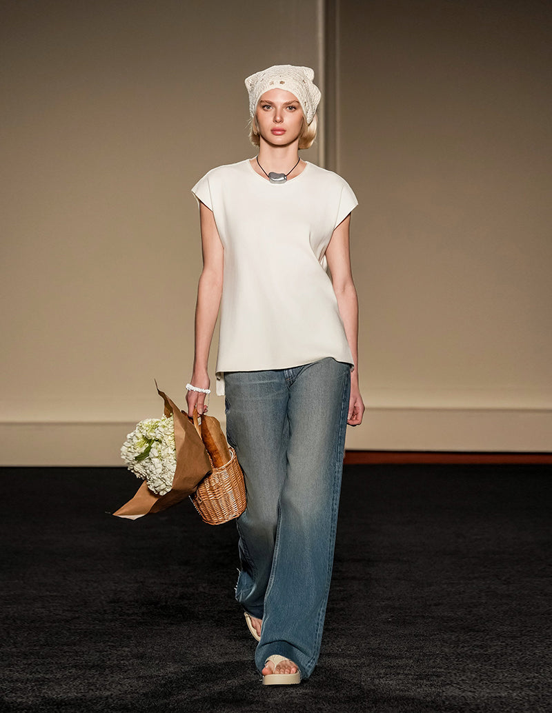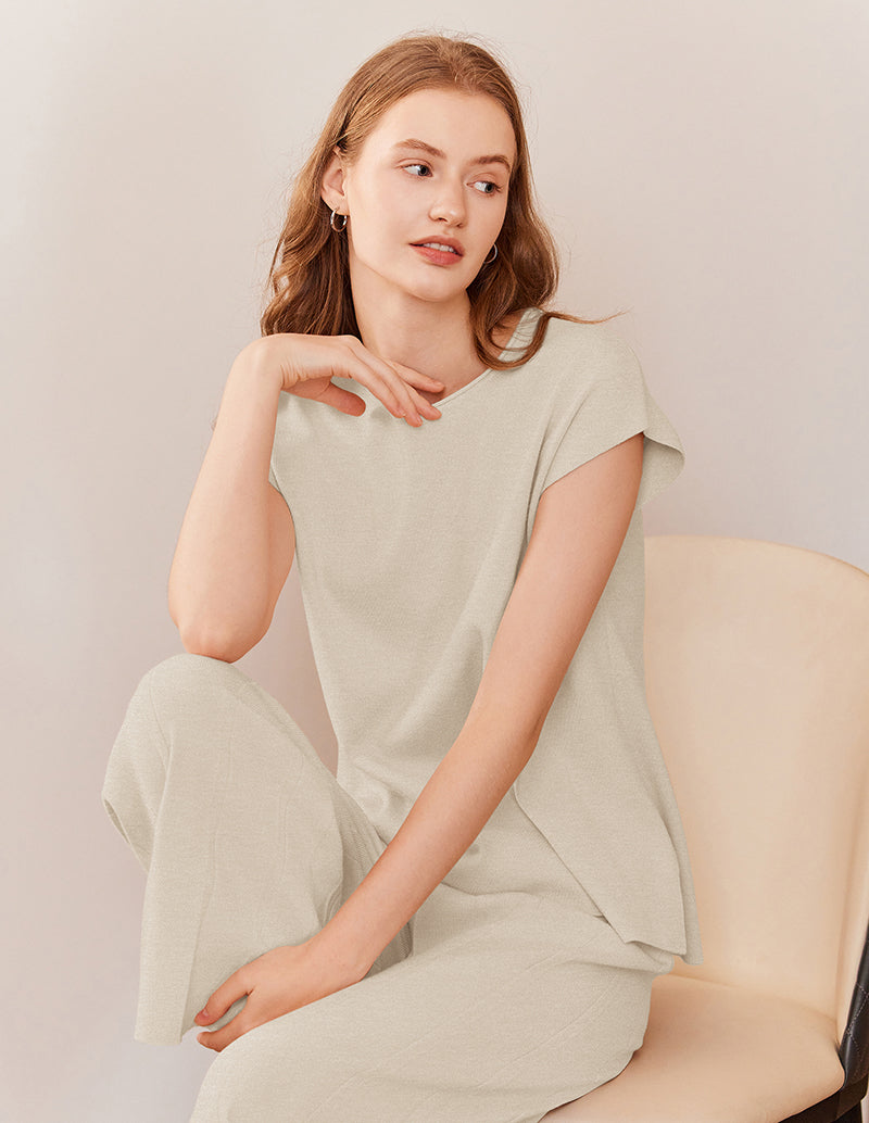 • Top: Pullover knitted tops featured with cap sleeve, crew neck, side split hem, high low irregular hem.