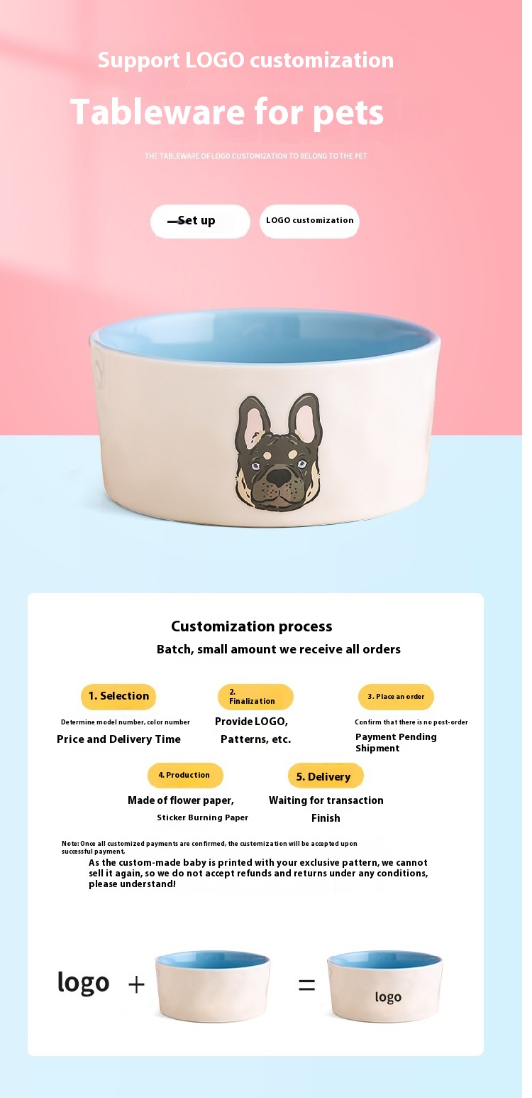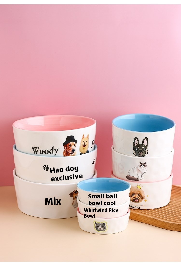 Customized pet bowl ceramic dog/cat bowl food basin teddy dog food golden retriever food basin water bowl anti-flip large dog rice basin