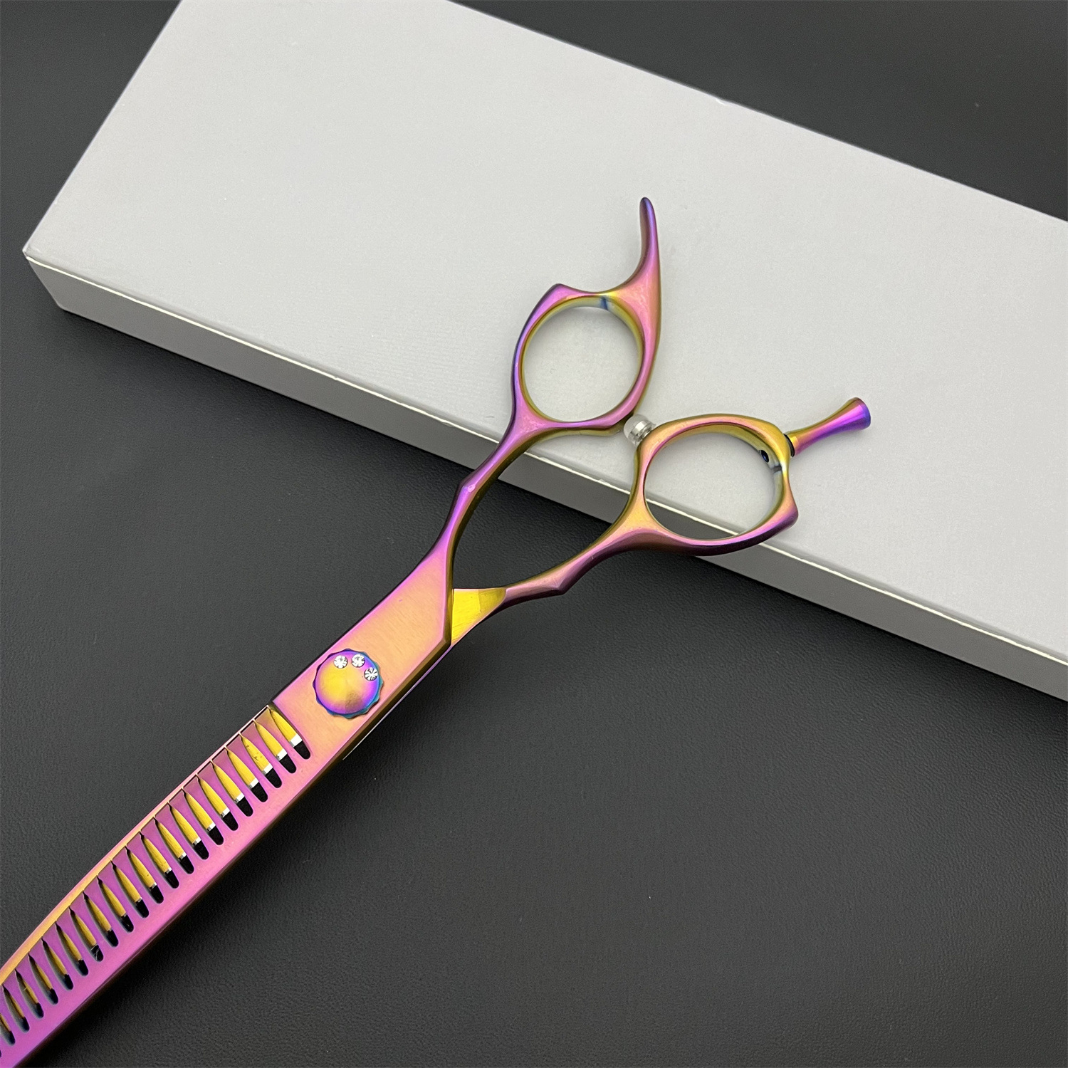 DE-7-inch 440C curved thinning scissors arc scissors high-end pet beauty scissors double handle personality cobalt blue