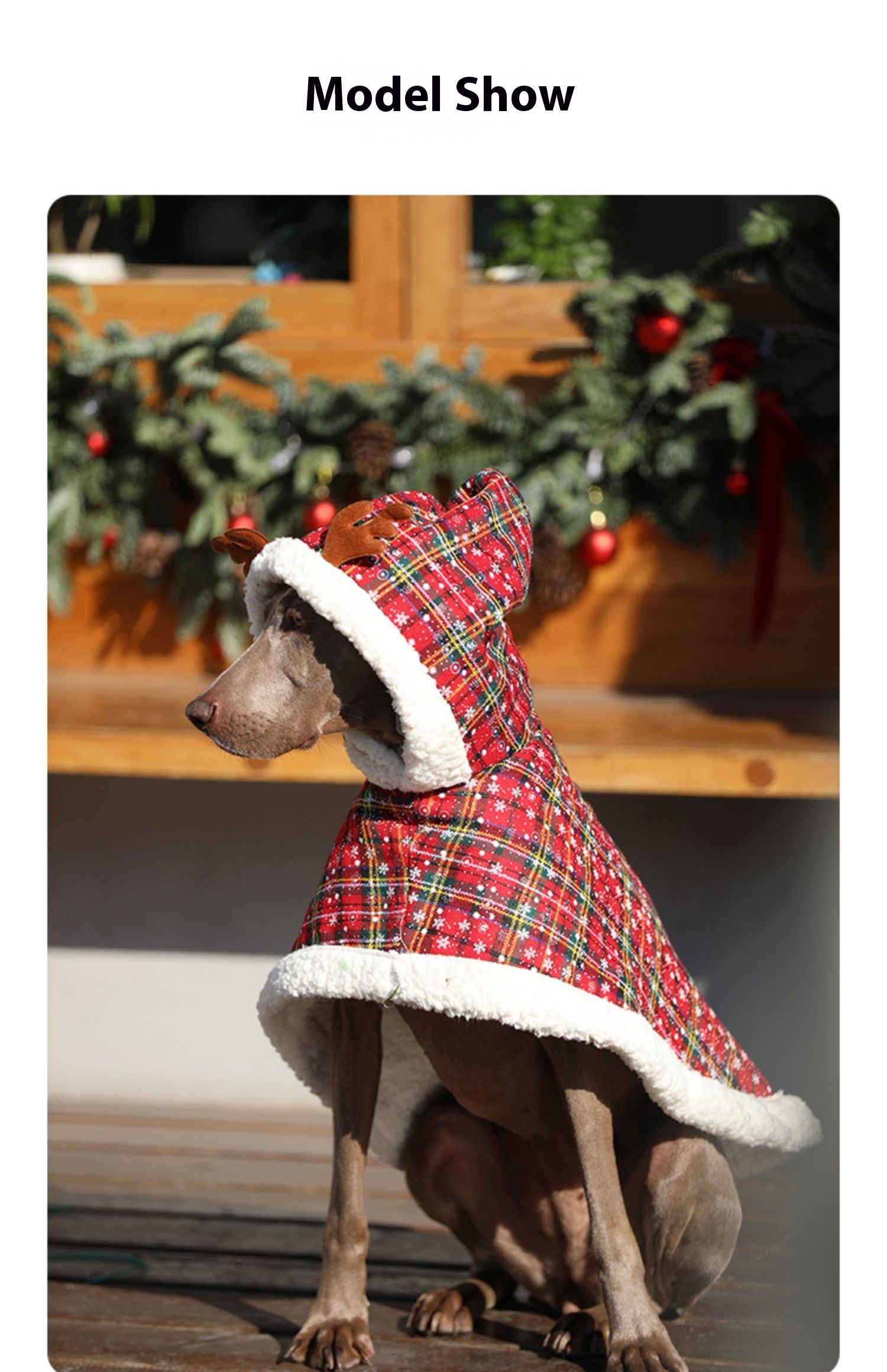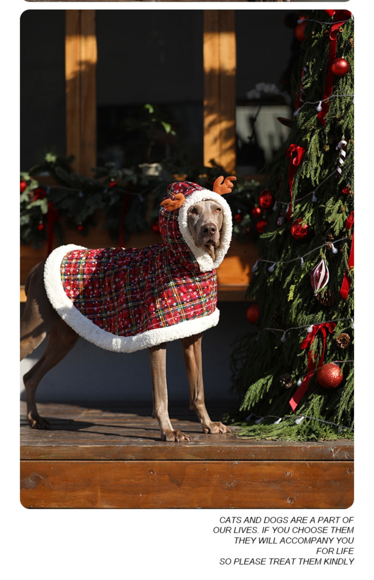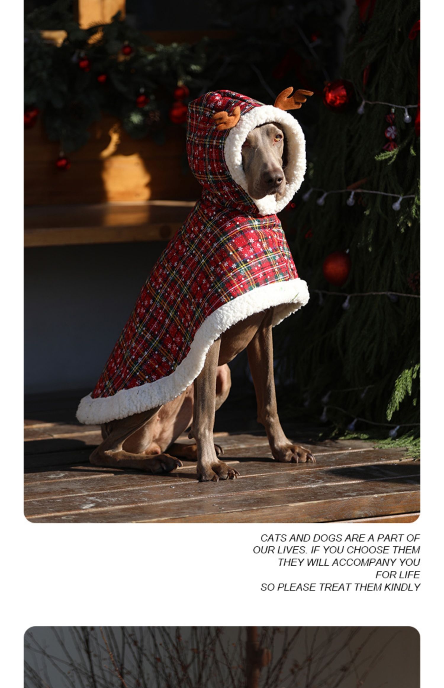 Dog Christmas clothes autumn and winter pet Christmas winter clothing warm fleece-lined cloak large dog winter cute clothes