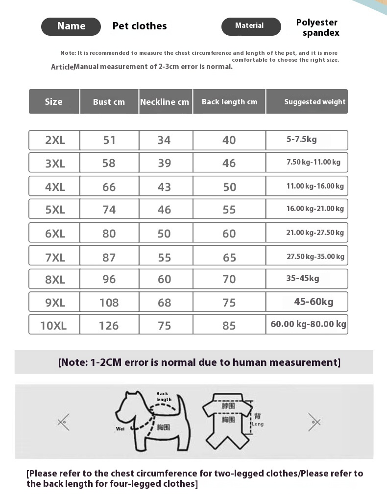 3XL back length 46 bust 58 recommended 7.50 kg-11.00 kg