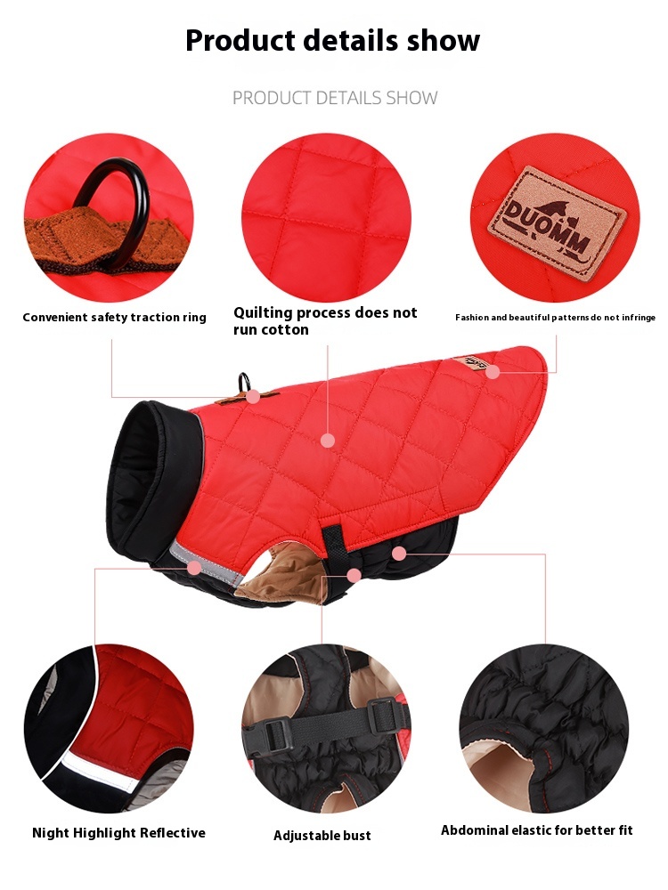 Dog clothes autumn and winter clothing medium large dog cotton-padded jacket Dubin golden retriever vest winter cotton dress pet winter cotton-padded vest