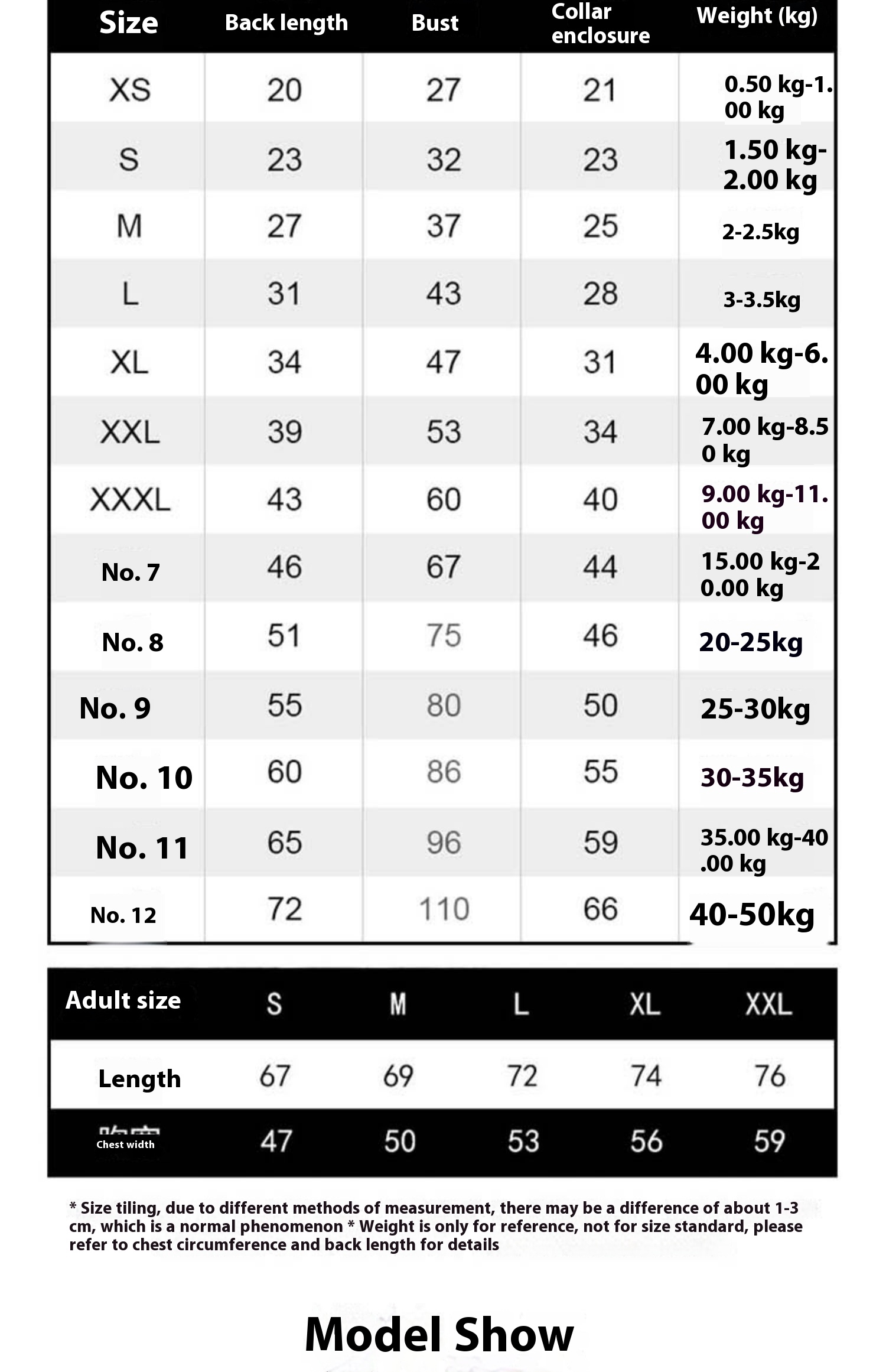 No.9: chest circumference about 80cm (22.50 kg-27.50 kg