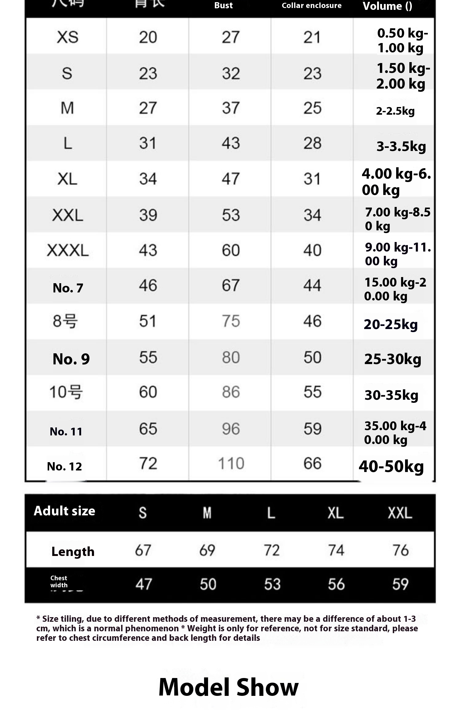 No.9: chest circumference about 80cm (22.50 kg-27.50 kg