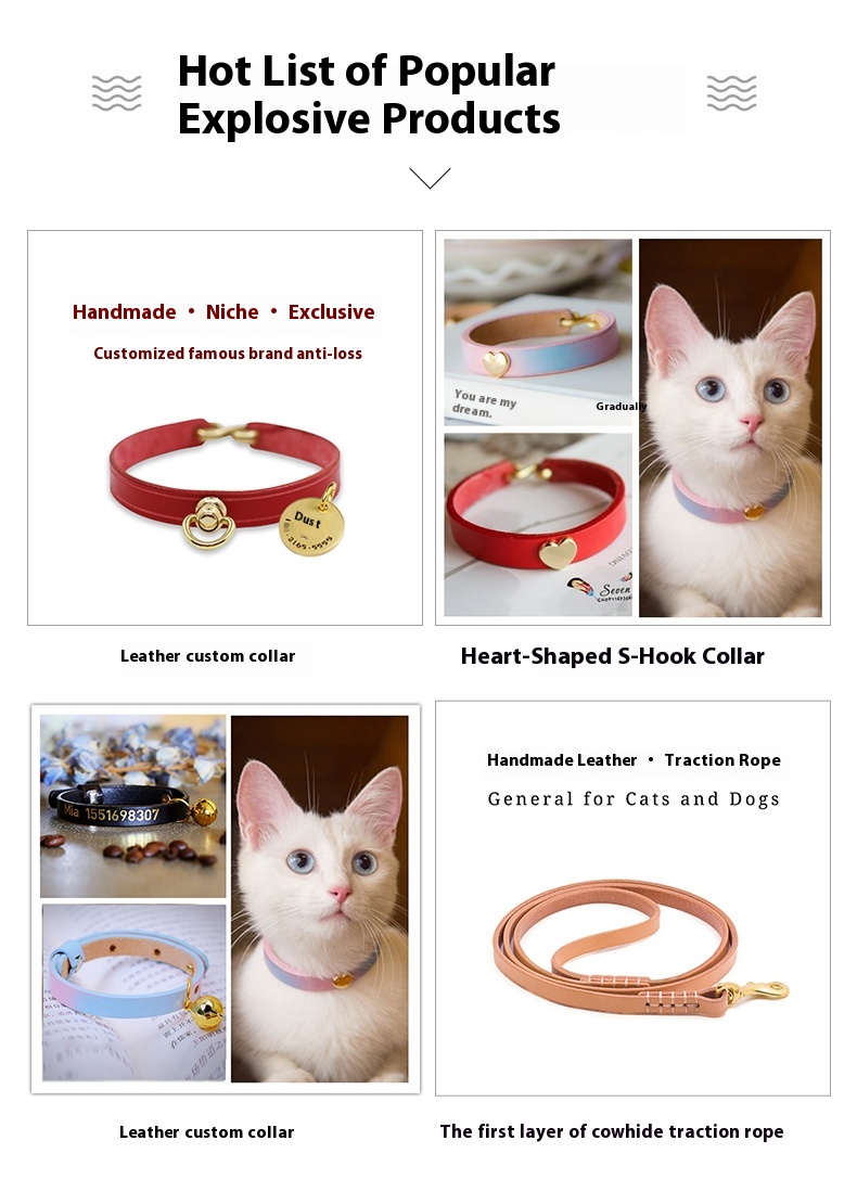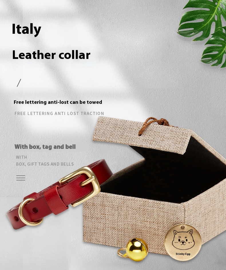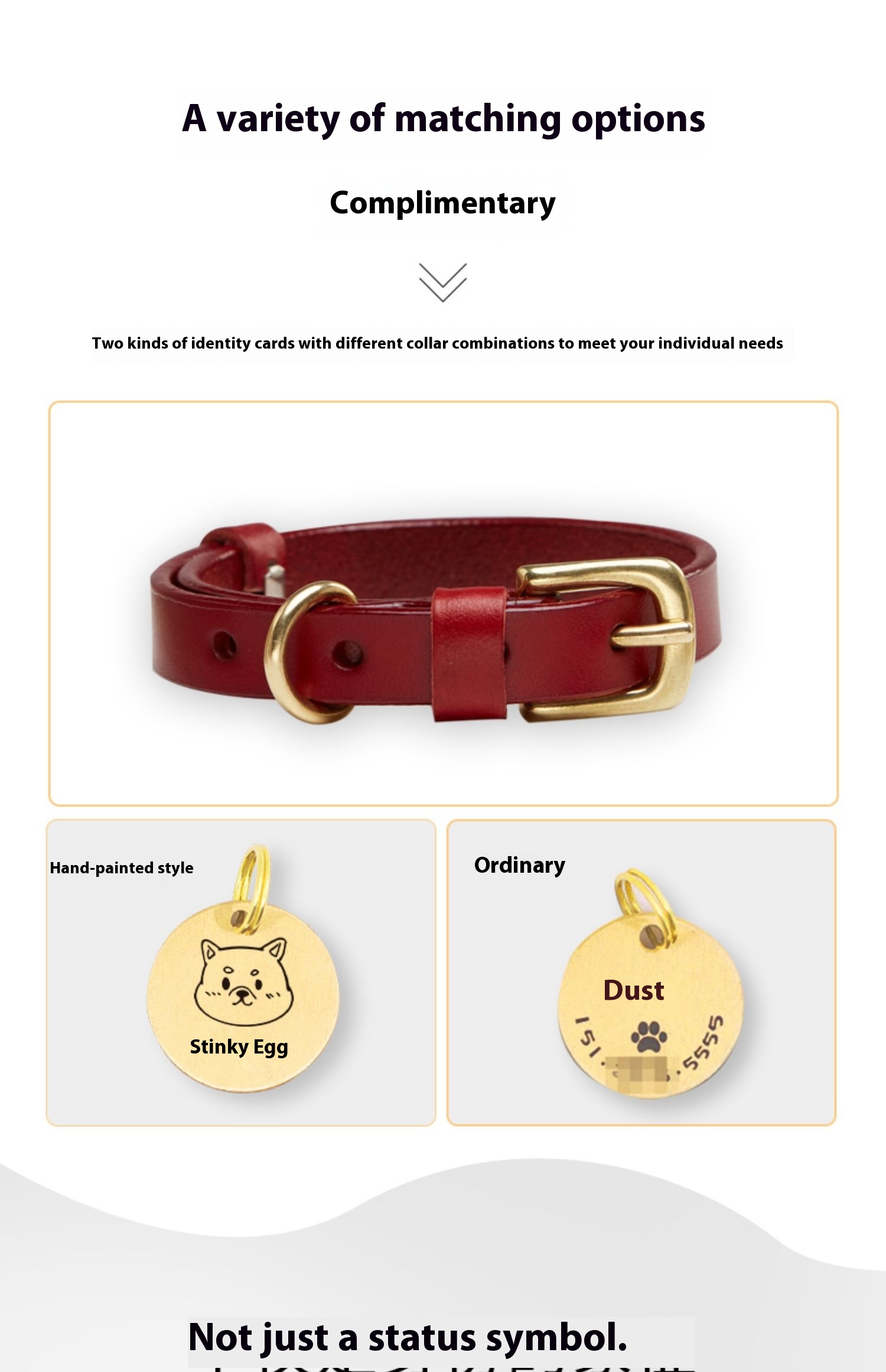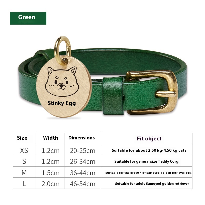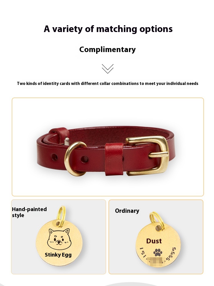 Dog collar collar genuine leather dog tag custom cat collar cat card lettering anti-lost small large dog adjustable