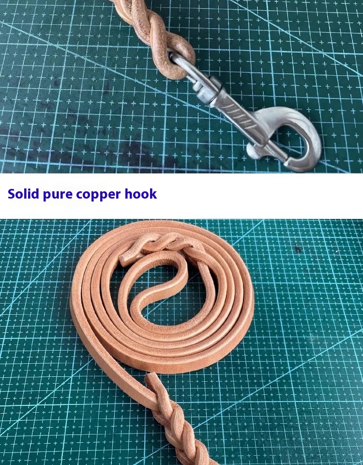 Dog hand holding rope cowhide leather dog leash high-end traction belt medium large dog weave bracelet thickened