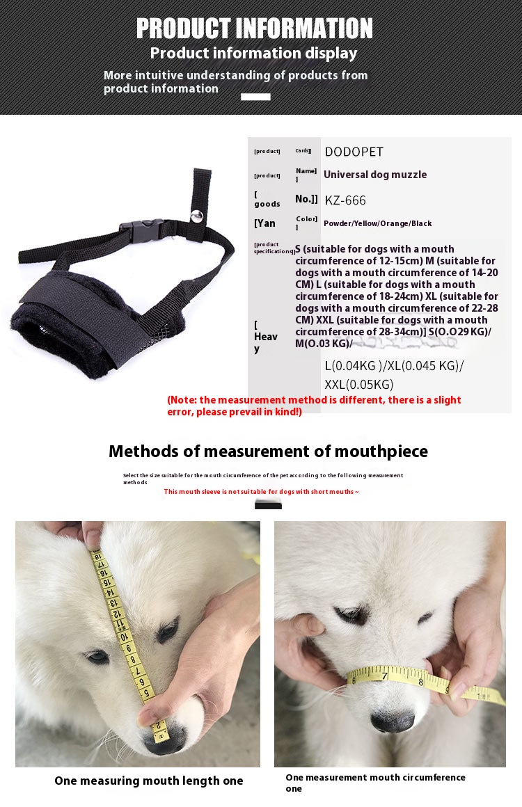 Dog mouth cover anti-bite/anti-bark dog mask dog dog mask adjustable size dog training pet supplies