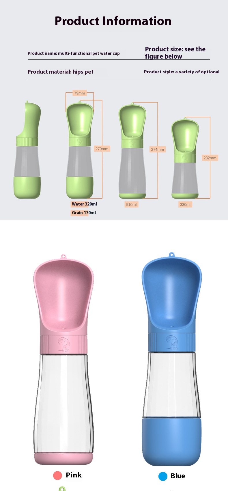 Pink drinking water 320ml feeding 170ml