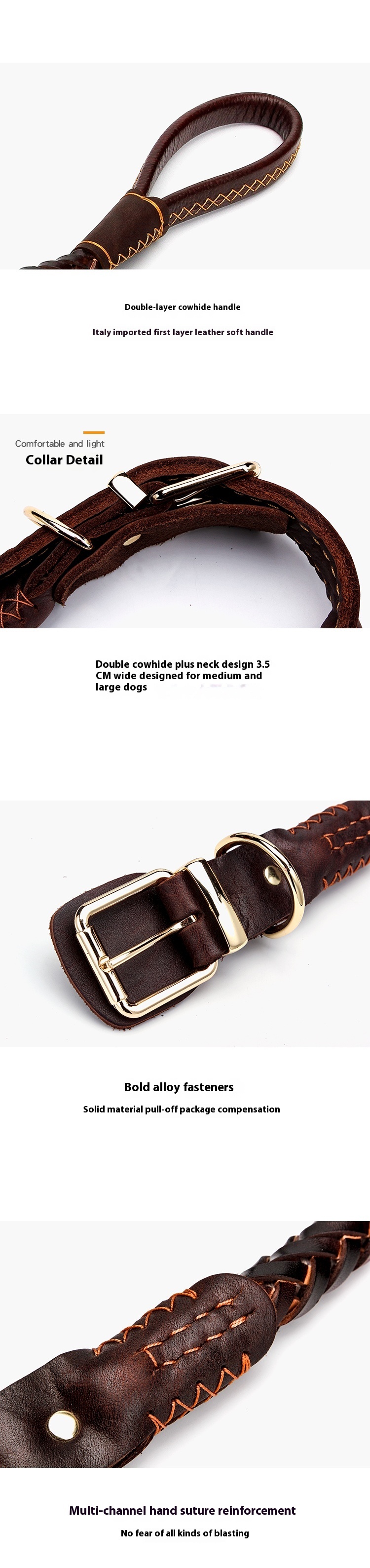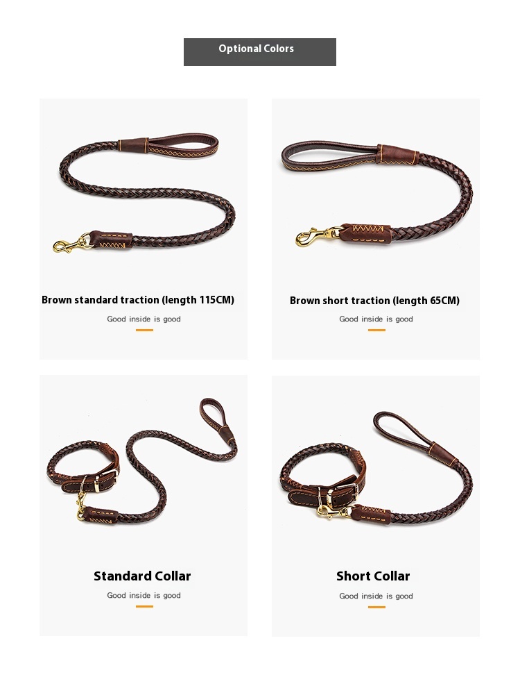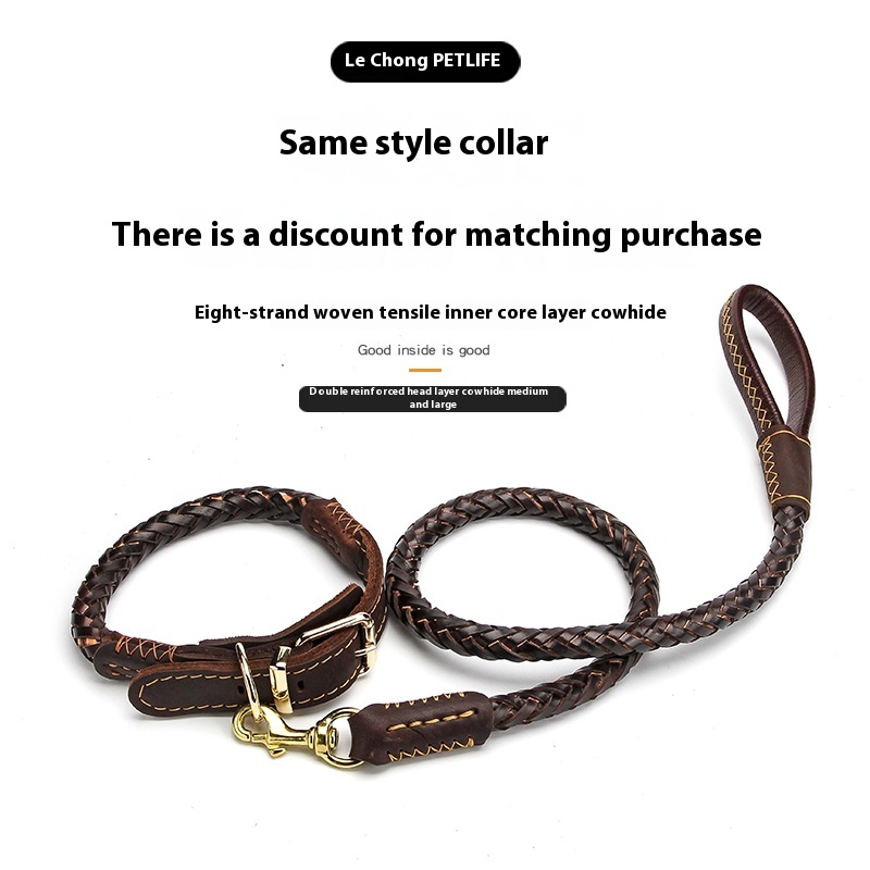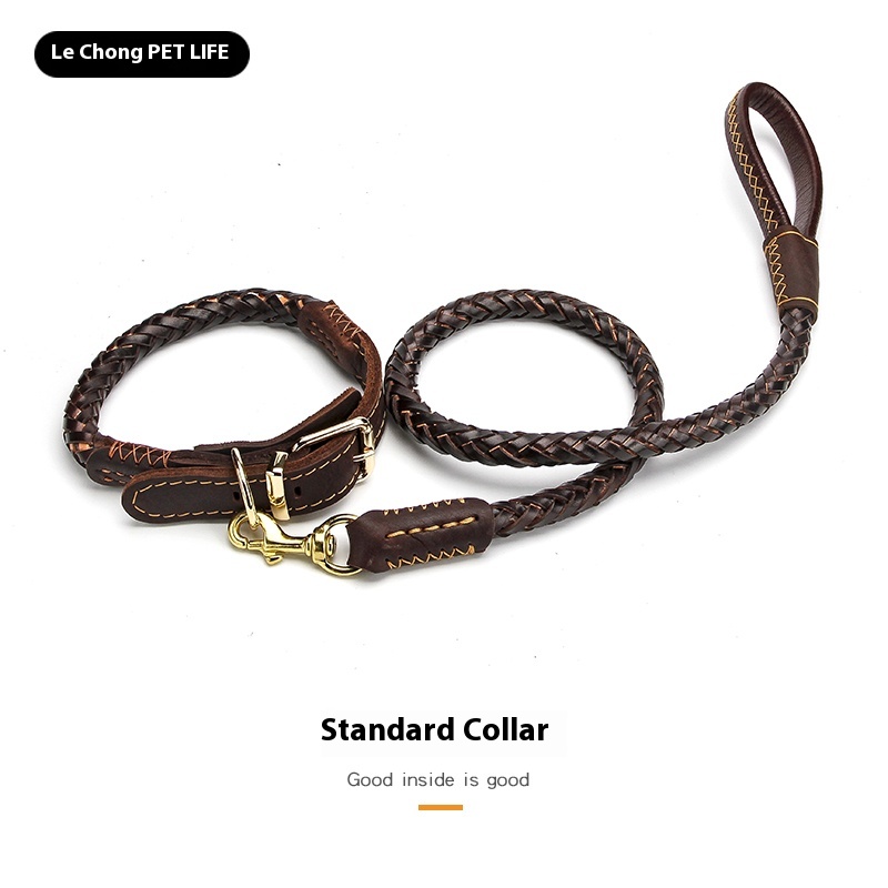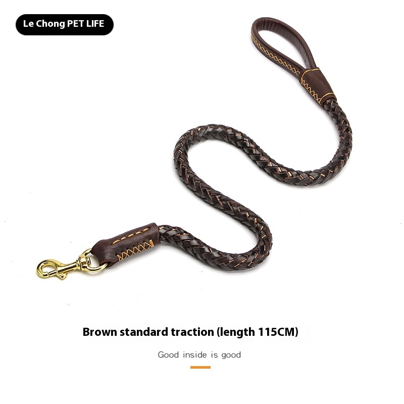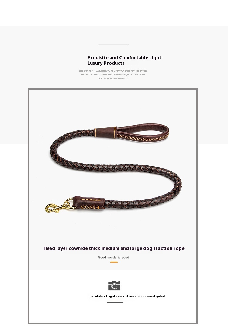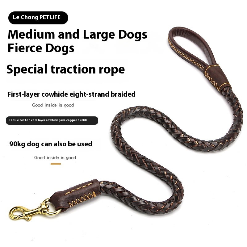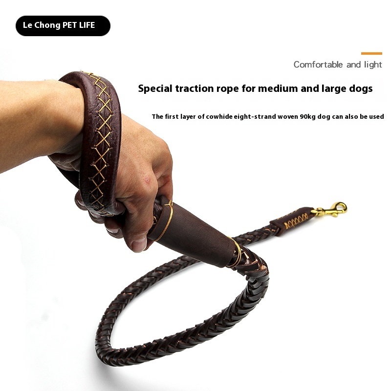 Dog rope leash large dog golden retriever Labrador special cowhide thick solid leather a Bulldog Rowena walking dog
