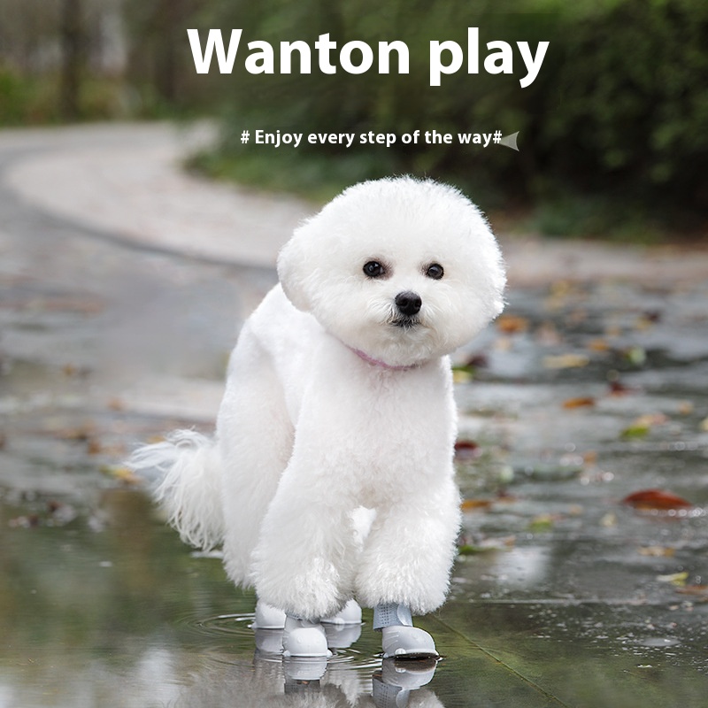 Dog shoes Pomeranian/Bichon Frise Teddy shoes set of 4 waterproof rain boots booties pet silicone rain boots