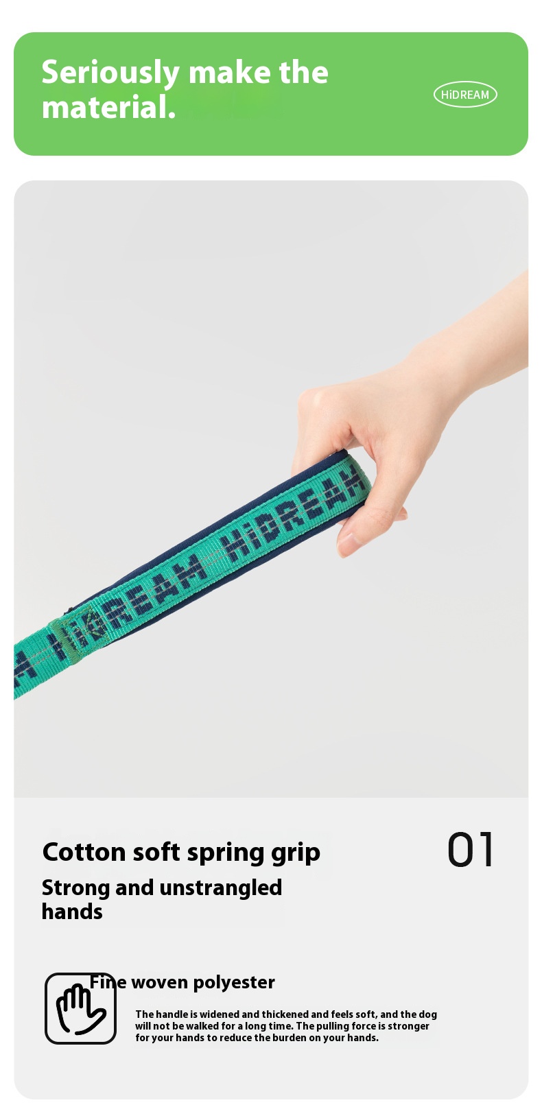 Dog soft handle hand holding rope explosion-proof integrated P rope large dog dog leash rock climbing grade nylon rope