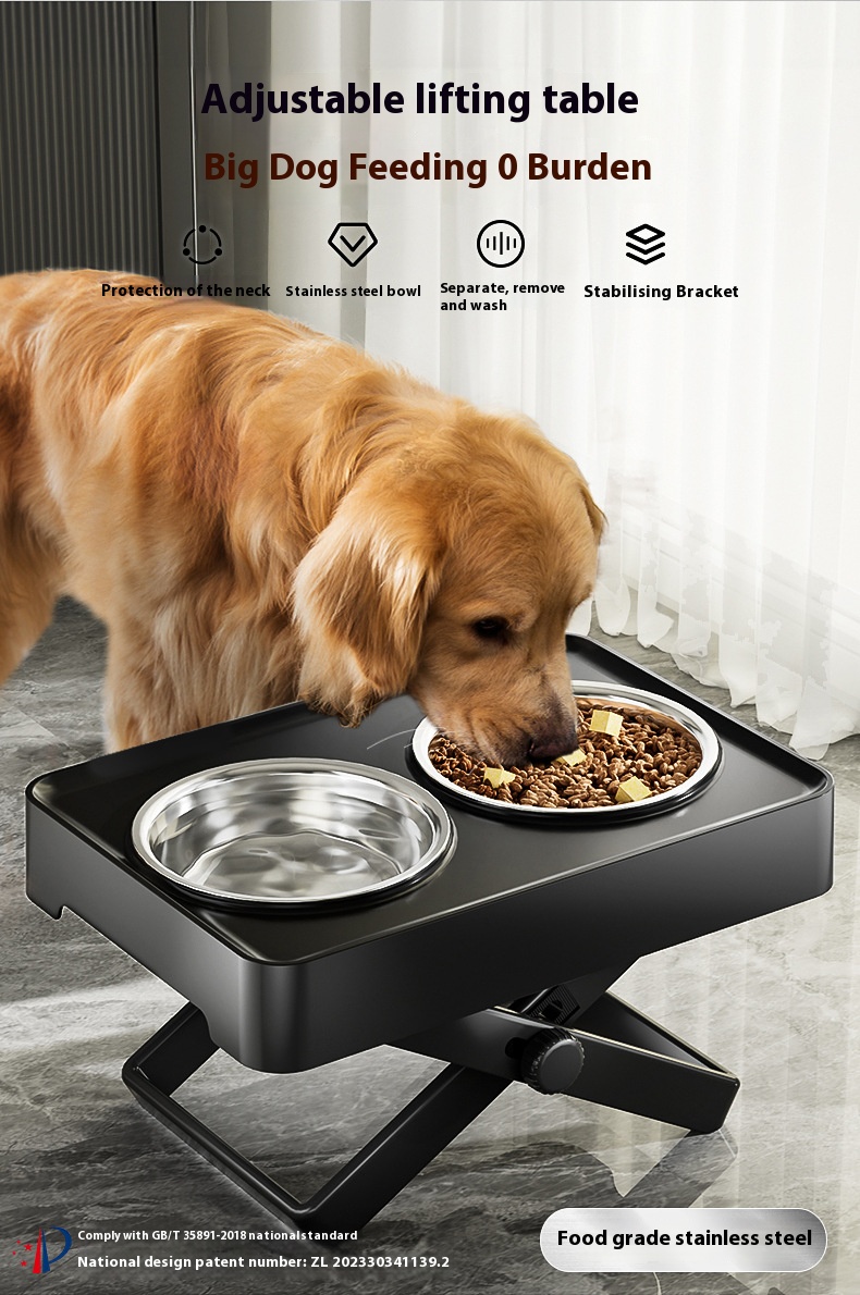 Dog stainless steel elevated dog bowl large dog Golden Retriever high leg double bowl dog basin adjustable Pet Bowl