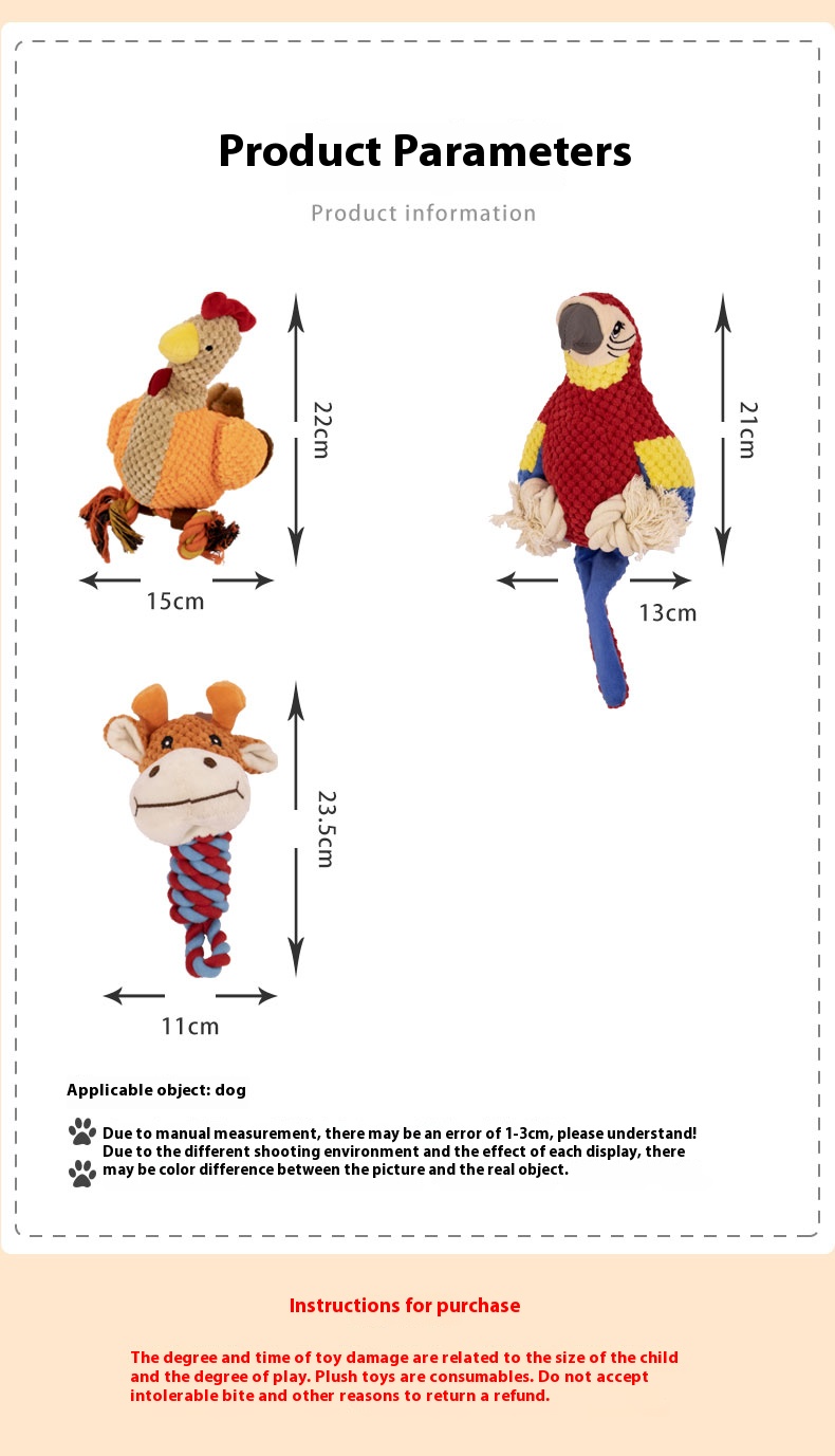 Dog toy plush sound-making cotton knot relieving stuffy pet sound-making molar toy golden retriever/Border Collie Shiba Inu funny dog doll