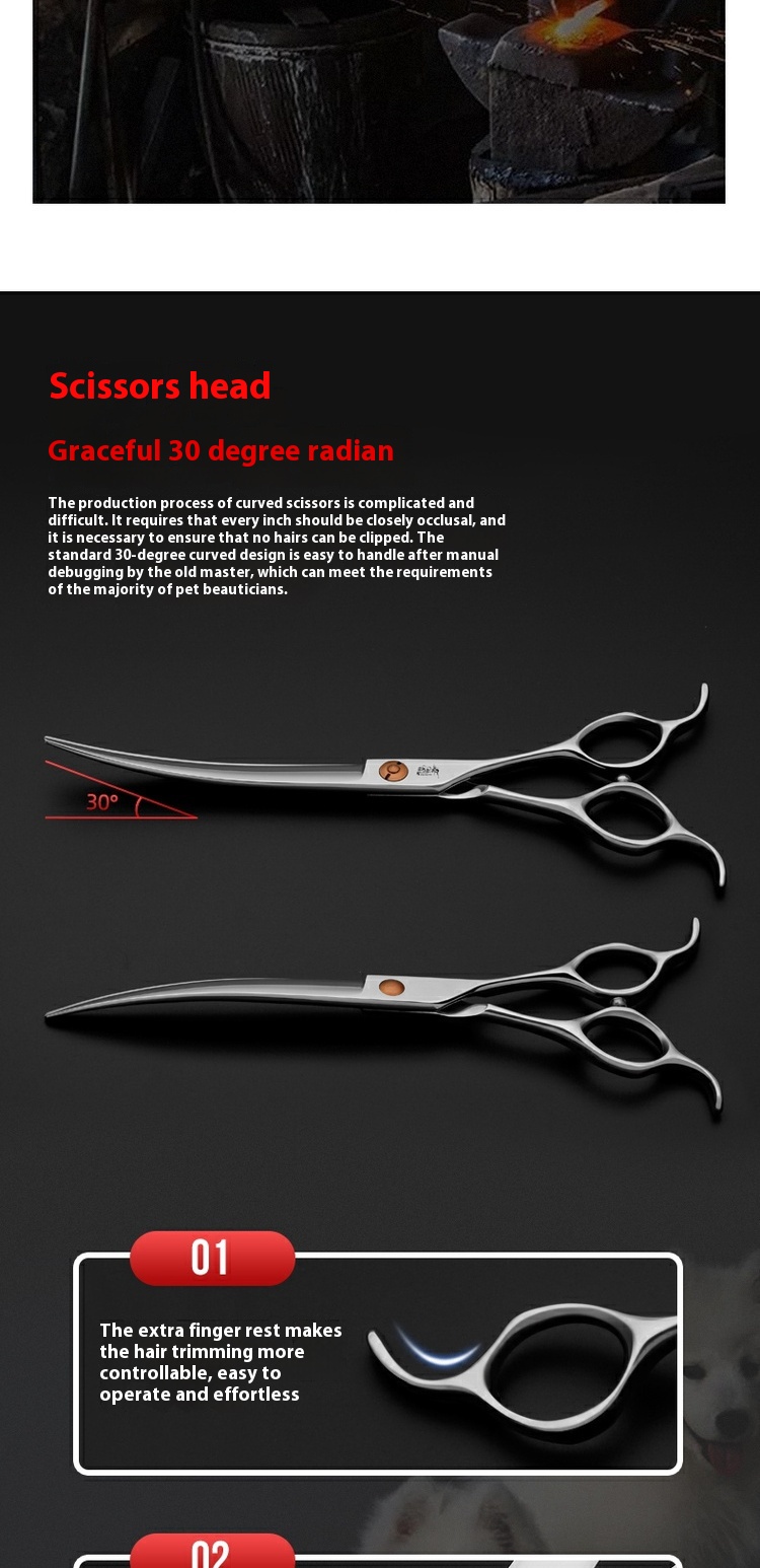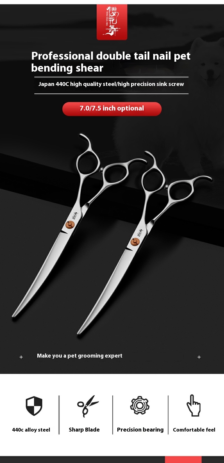 Double tail nail pet beauty scissors imported 440C material warped scissors upper bending down bending not tired hand beautician special bending scissors